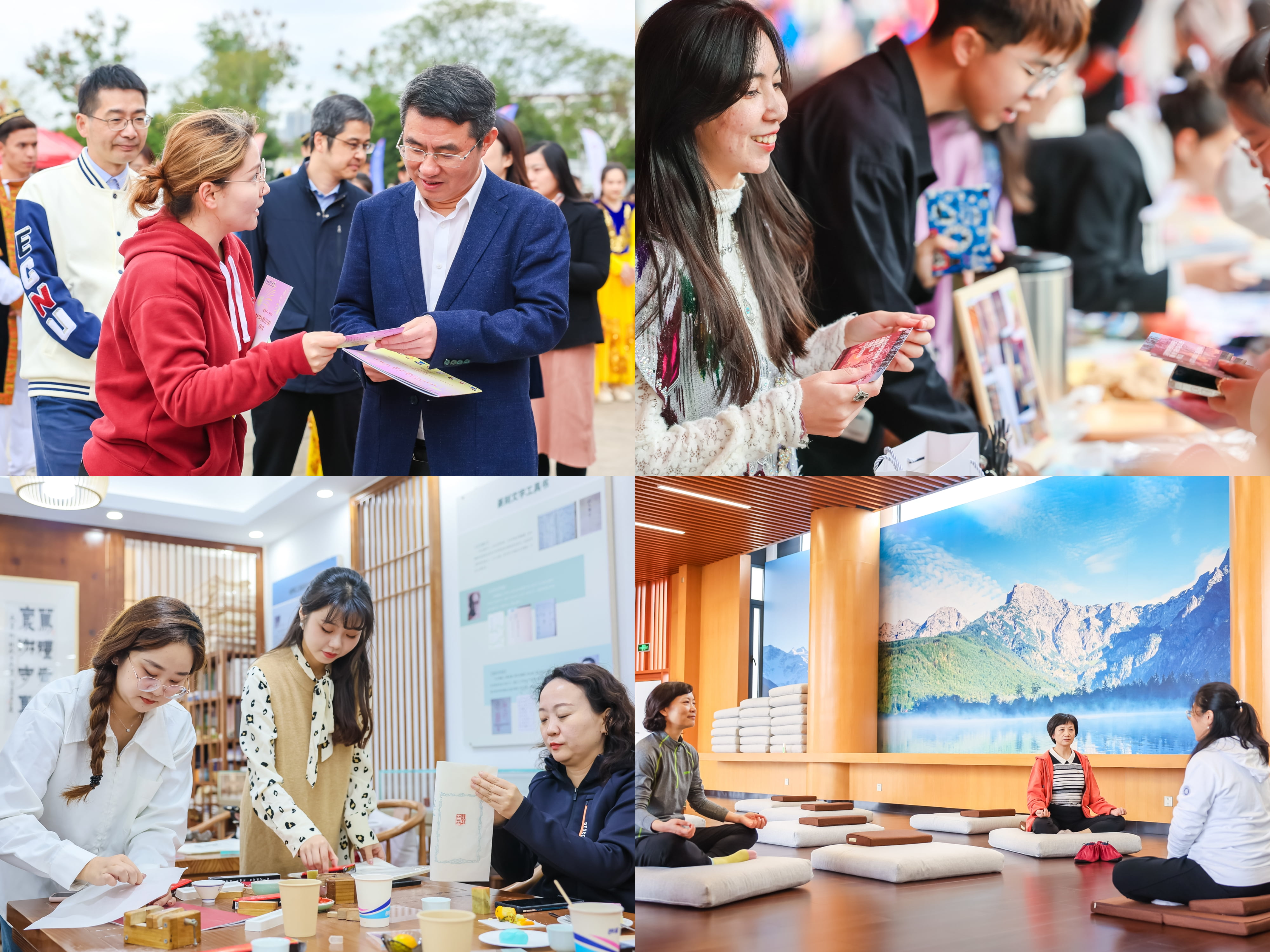 活动期间,赛场周边设置了精彩纷呈的多文化体验活动。篆刻艺术长廊、幸福研习中心、民族文化游园会、音乐下午茶、美食集市、活力社团展示等为本次活动增加亮点,成为繁荣校园文化的展示窗和全面育人成果的亮相台,吸引了参赛高校的嘉宾、教师驻足体验。
