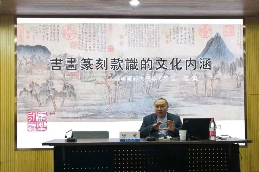 此次培训邀请到华东师大美术学院书法系主任张索教授作专题讲座。张索教授,教育部中华优秀传统文化篆刻传承基地负责人,中国书法家协会理事兼中国书协教育委员会副主任,上海市书法家协会副主席,西泠印社理事。