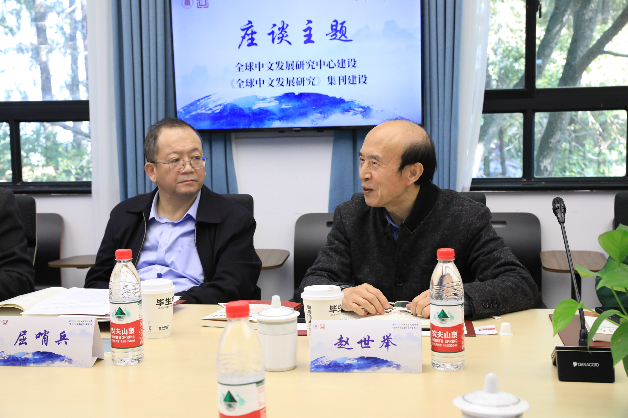潘文国介绍了《全球中文发展研究》的创刊历程和办刊理念,指出刊物特色就存在于全球、中文、发展这三个关键词上,充分体现了我们对国际、中文、教育这三个词新的认识,新的努力和新的展望。他希望中心和集刊能够作为历史证人,见证全球中文的每一步发展。全球中文发展研究中心语情研究室主任俞玮奇汇报了中心成立一年来所取得的工作成效。