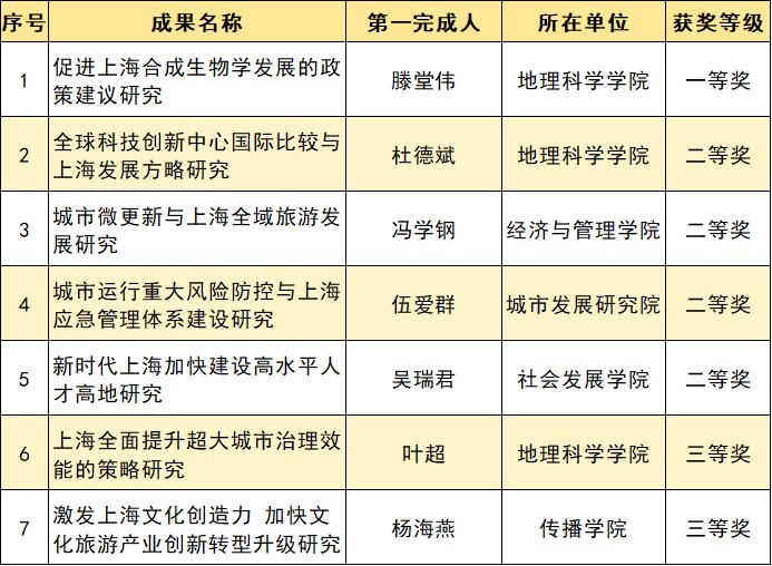 根据上海市决策咨询研究成果奖评审委员会公告,第十四届上海市决策咨询研究成果奖现已正式揭晓。本市共有80项成果获奖,华东师大获奖7项,其中,一等奖1项,二等奖4项,三等奖2项。华东师大获奖总数位居上海市第二。