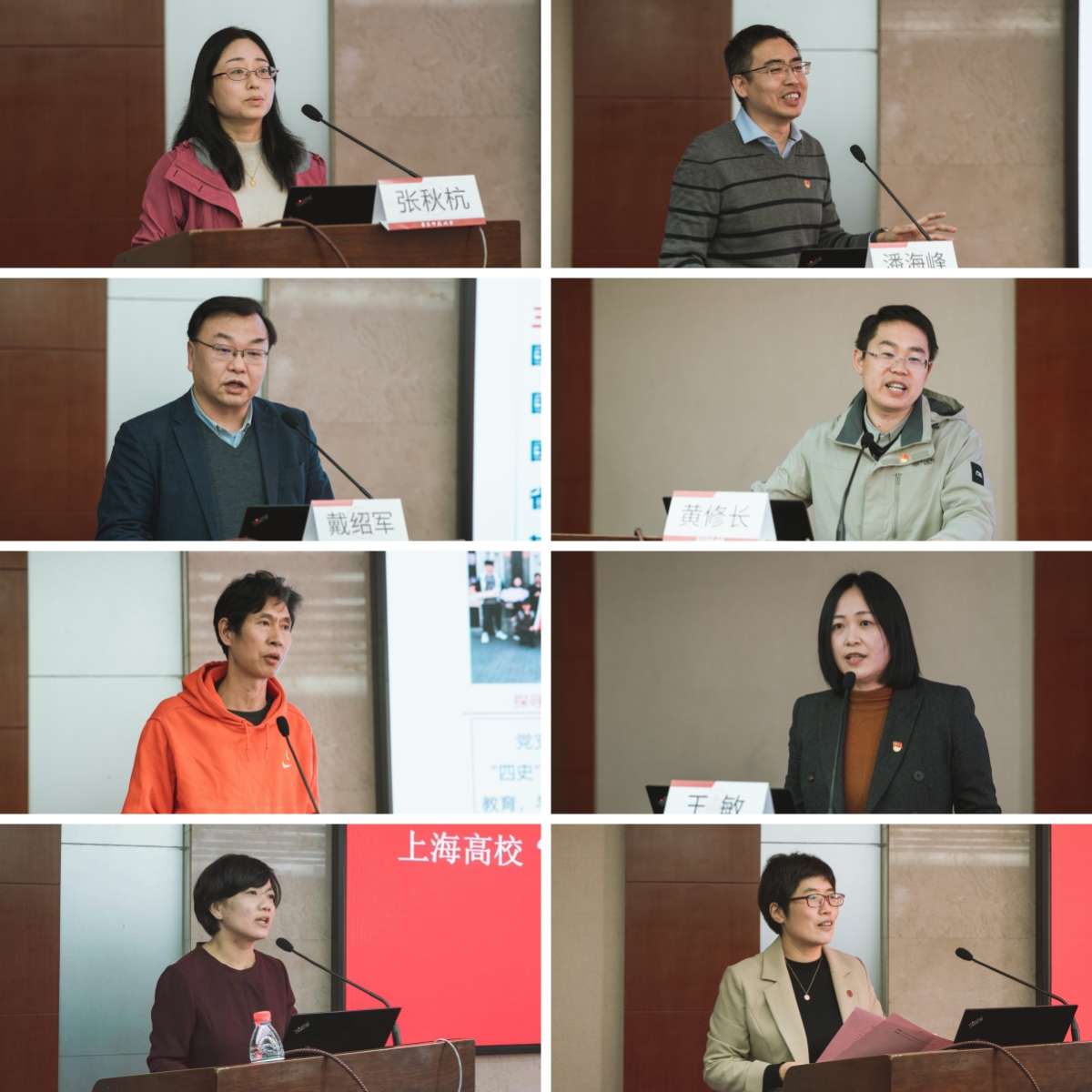 上海交通大学机械与动力工程学院振动、冲击、噪声研究所党支部书记黄修长,同济大学建筑与城市规划学院教工第八党支部书记王敏,上海中医药大学体育部党支部书记龚博敏,上海外国语大学国际教育学院教工党支部书记张秋杭,澳门永利皇宫官网入口物理与电子科学学院精密光谱科学与技术国家重点实验室教工第一党支部书记潘海峰,上海师范大学生命科学学院教工第三党支部书记戴绍军分别围绕发挥“头雁效应”、增强基层党组织的政治功能和组织功能,聚力推进“一融双高”建设,分享了所在支部创建全国党建工作样板支部、上海市委组织部党支部建设示范点的典型经验和特色做法。