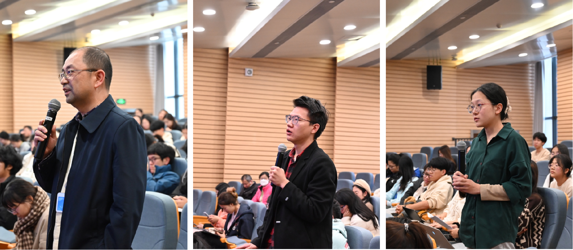 两个报告一个传统、一个前沿,让师生深切感受到了量子思维与老子思维的魅力,意犹未尽。在互动交流环节,现场师生与报告嘉宾围绕“微观粒子的概率波”“如何理解欲望”“道德经中的价值判断”等话题进行了深入探讨。