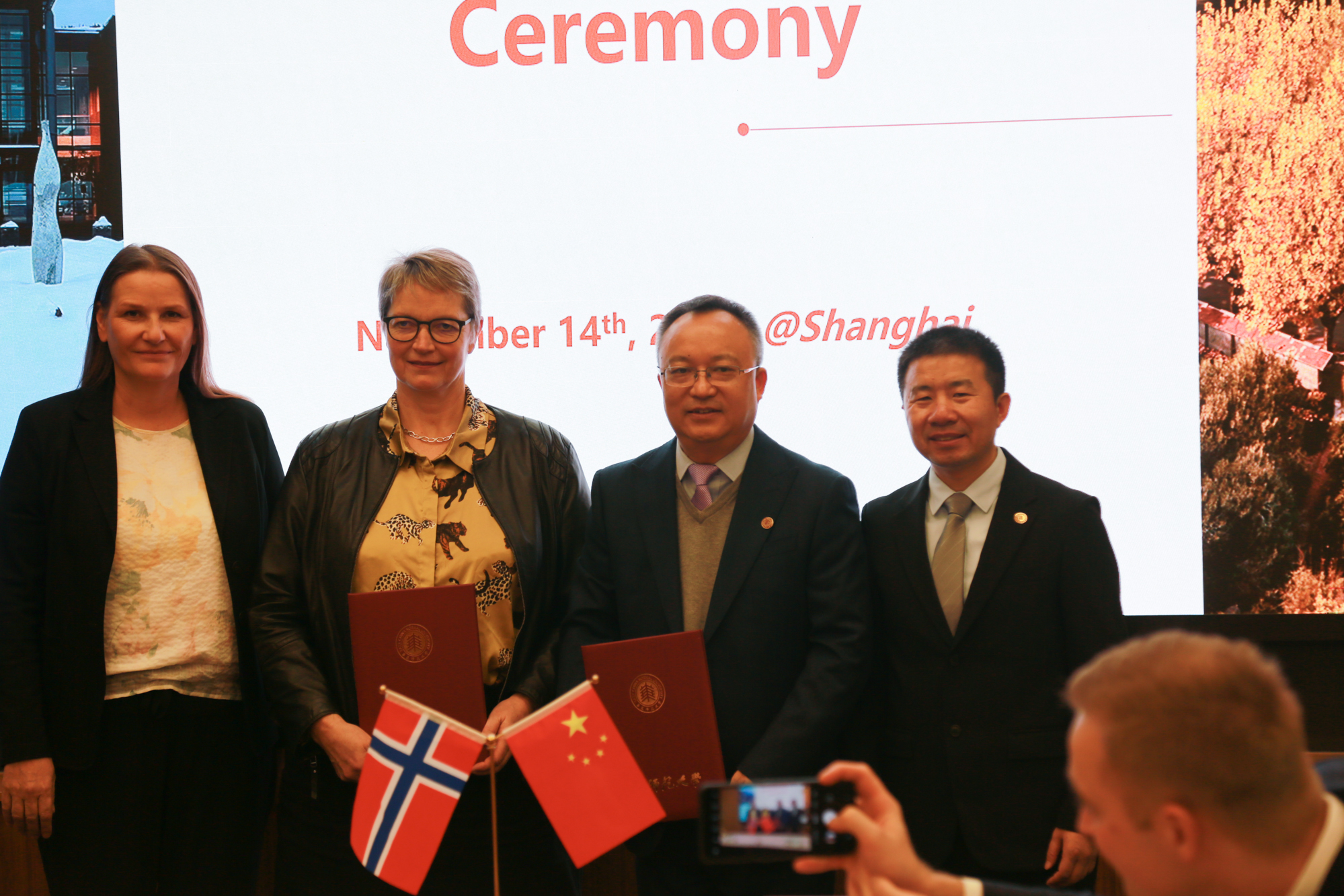11月14日上午,澳门永利皇宫官网入口-挪威诺德大学合作签约仪式在华东师大普陀校区办公中楼小礼堂举行。华东师大副校长雷启立、挪威诺德大学校长Hanne Solheim Hansen、挪威驻上海总领事Lise Synnøve Nordgaard出席并致辞。仪式由华东师大政治与国际关系学院副院长、俄罗斯研究中心执行主任刘军,挪威诺德大学商学院高北商业与治理中心主任Frode Mellemvik共同主持。华东师大国际合作与交流处相关负责人、政治与国际关系学院师生代表,挪威诺德大学教师代表,挪威驻上海领事馆相关人员等参加本次活动。