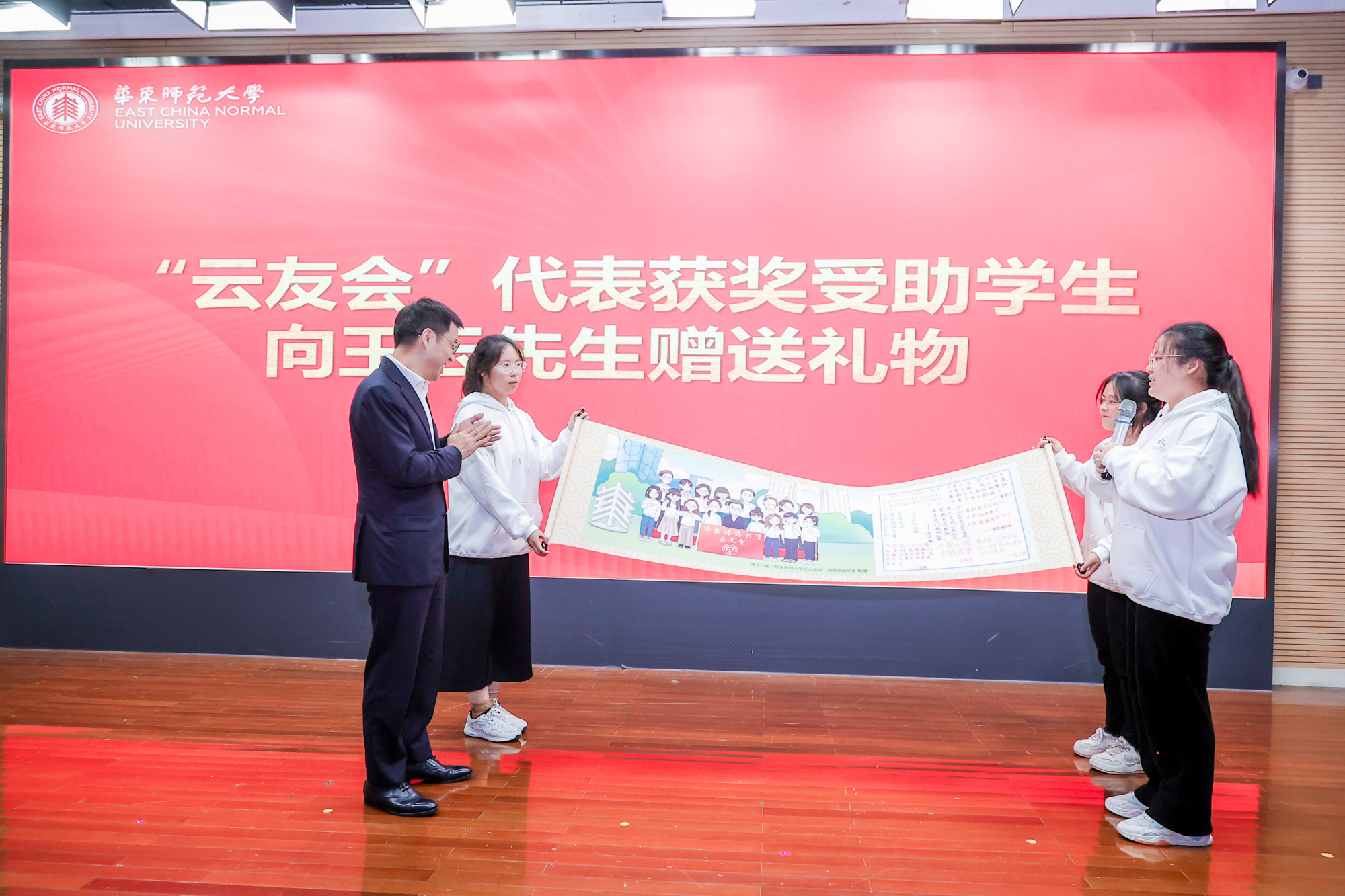 王云在寄语中感谢了上海市慈善基金会和澳门永利皇宫官网入口对“王云基金”的积极推动,并高度肯定了云友会和“王云梦想加油站”的育人成效。他表示,“捐资助学、帮困育人”是自己设立“王云基金”的初心,希望能给予优秀同学们的不仅仅是物质上的帮助,更多的是心灵上的鼓励;他也将会继续与华东师大加强合作,不断创新资助模式,并与社会各界的爱心人士携手努力,为更多学生点亮希望之光。