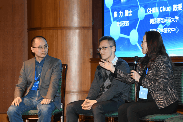 陈力博士主持了产学研圆桌论坛,相关专家围绕“如何打通药物研发中产学研用壁垒”这一关键问题进行了深入探讨,并与参会师生就产学研用开展了充分交流。