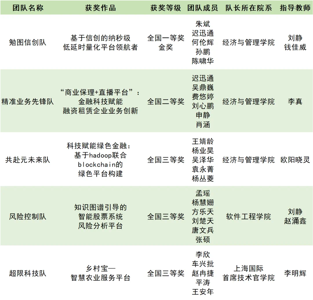 第二届中国研究生金融科技创新大赛结果揭晓,华东师大团队继首届夺魁之后再次拔得头筹,一举夺得本届大赛唯一金奖(全国一等奖7项,其中金奖1项),华东师大获“优秀组织奖”。