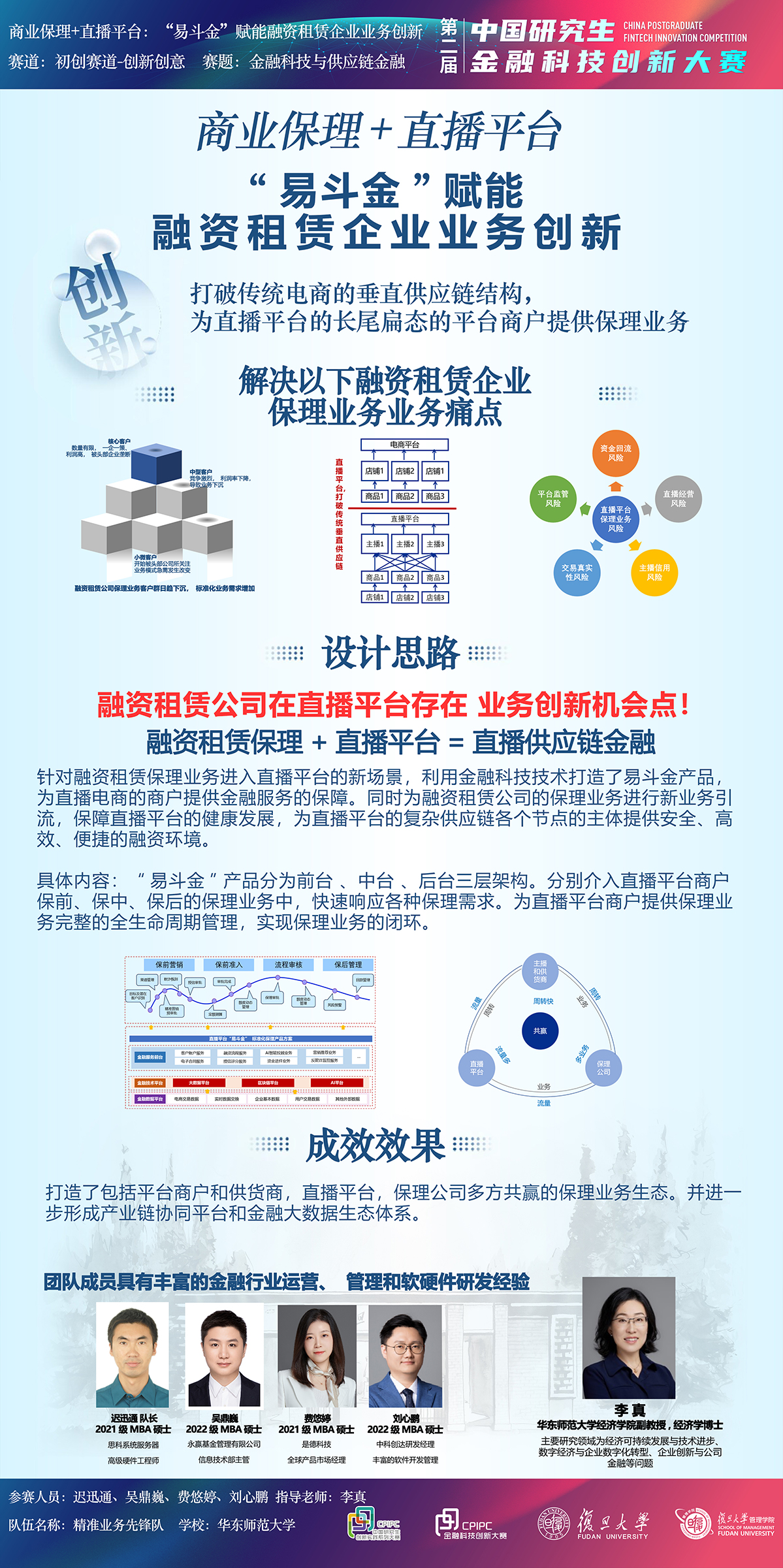 本届大赛围绕金融科技创新主题,设有初创赛道(包括创新创意方向和算法模型方向)、成长赛道两个赛道,分为初赛、预决赛、决赛三个阶段。全国120个培养单位的291支队伍报名参赛。华东师大共12支研究生队伍参赛,学校组建导师团、工作组,开展多次专题培训,加强重点成果培育,5支队伍晋级预决赛(全国81支),2支队伍晋级全国总决赛(全国24支),并最终斩获一、二、三等奖。