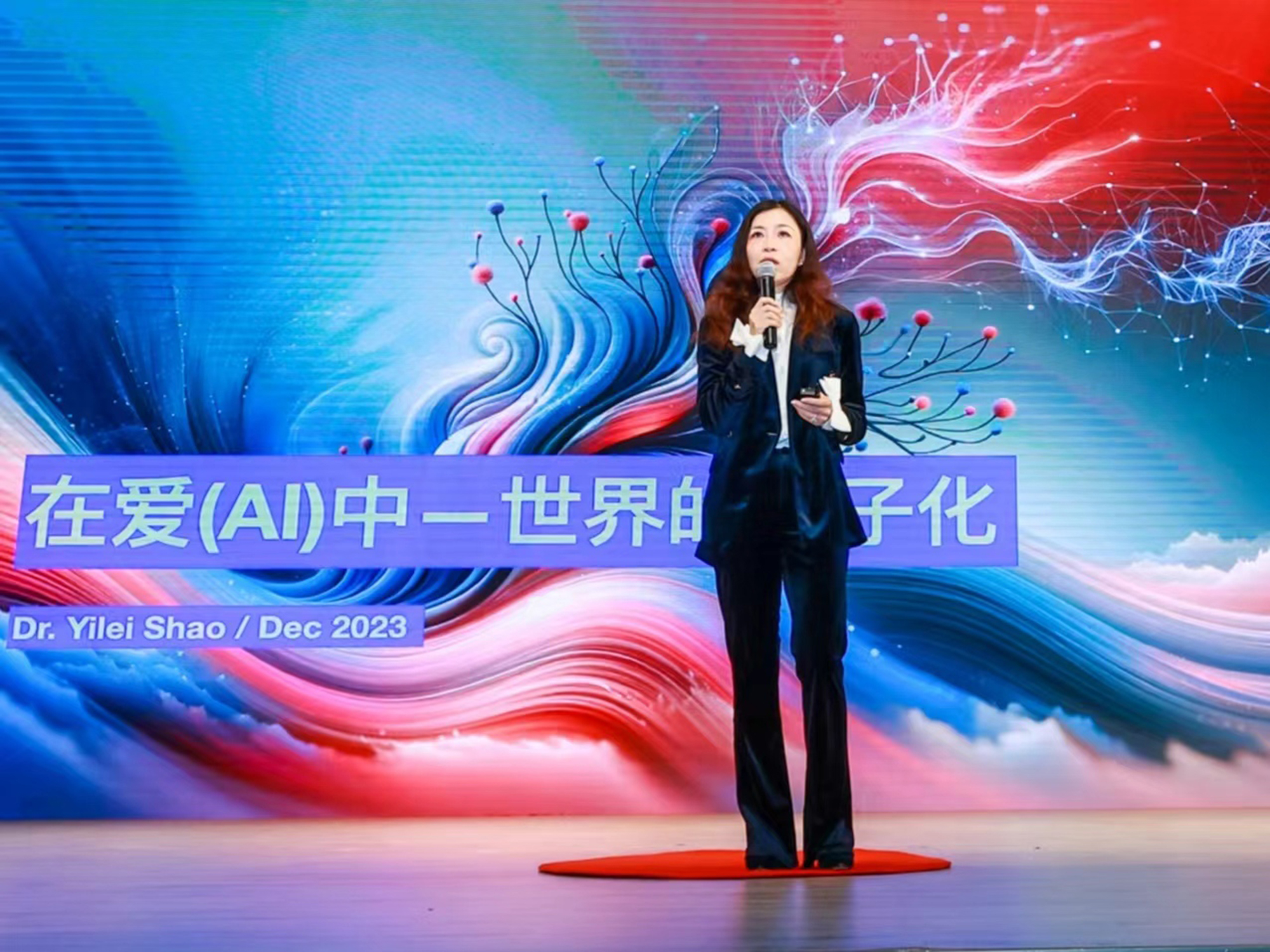 邵怡蕾以《在爱(AI)中:世界的量子化》为题,从“AI”“世界”“我们”三个角度展开她对AI 和当下世界的理解。她指出,在压缩与膨胀之间,我们的现实世界已经被量子化了,人们的世界观迎来了从经典物理到量子物理的转换,以概率为主的潜在性世界代替了人们熟知的确定性现实。