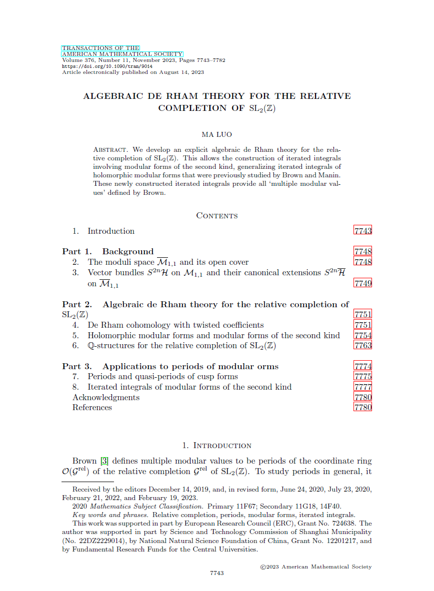 多重ζ值、多重模值都是L-函数特殊值的自然推广,是近年来的热点研究课题。数学科学学院助理教授罗马在Brown和Manin的基础上,构造了新的模形式累次积分,并提供了具体算法,为研究多重ζ值、多重模值创建了新工具。有关论文在线发表于国际知名数学期刊Transactions of the American Mathematical Society。