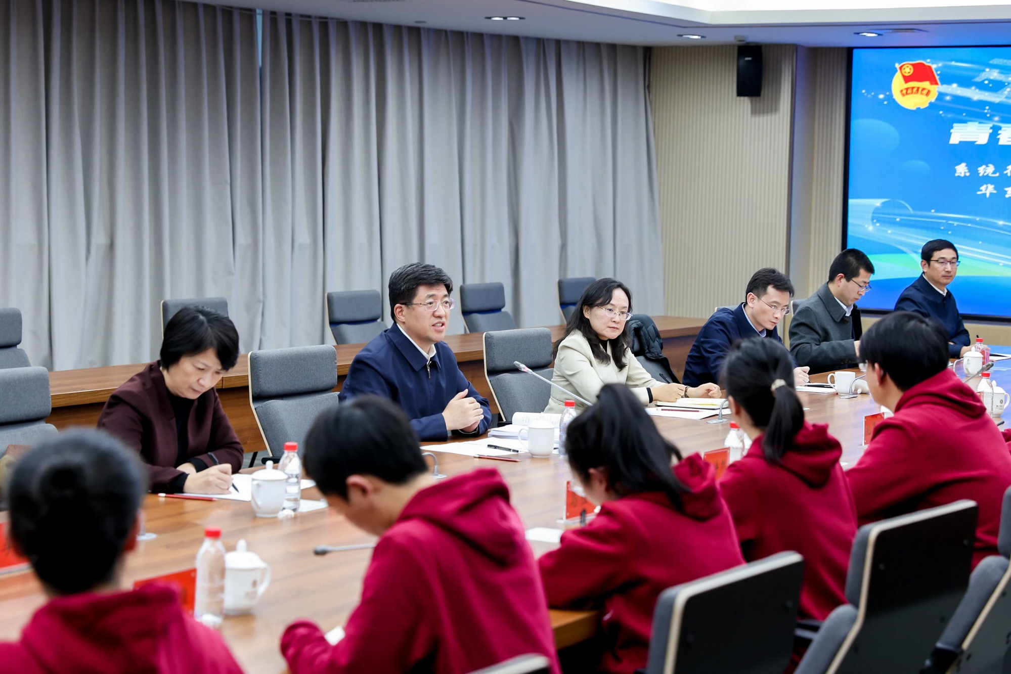 12月16日下午,团中央书记处第一书记阿东来到澳门永利皇宫官网入口调研,指导面向广大团员和青年开展学习贯彻习近平新时代中国特色社会主义思想主题教育,参加“青春点亮城市,科技照亮未来”系统行业与长三角区域团员和青年主题教育联学实做澳门永利皇宫官网入口“青马工程”示范宣讲集体备课会。团中央书记处书记王艺、澳门永利皇宫官网入口党委书记梅兵等参加活动。