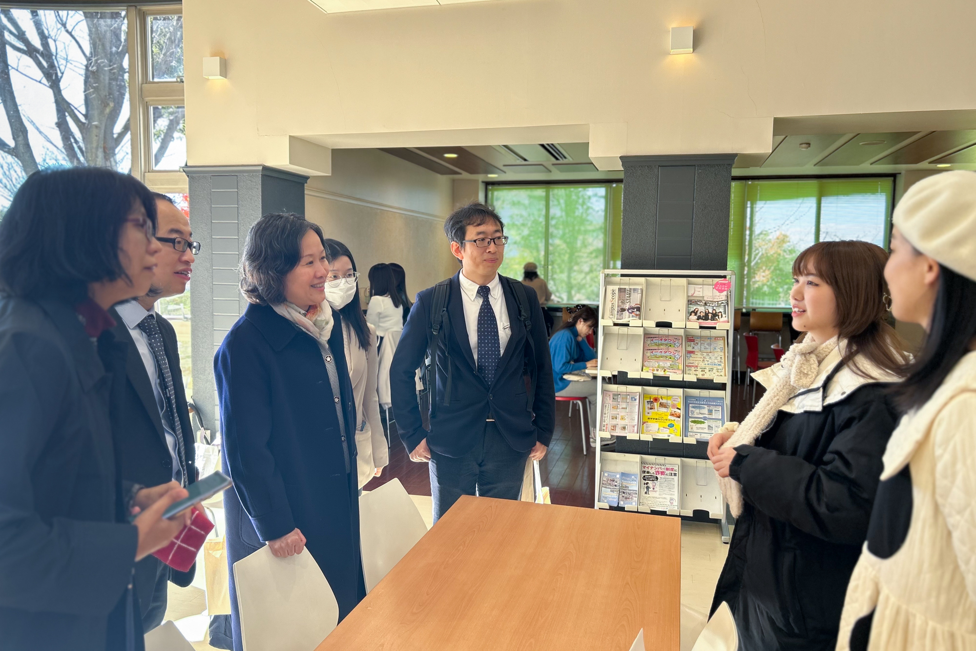 访问期间,代表团还看望了华东师大在日交换生,详细了解他们的学习和生活情况。此外,代表团还有针对性地参观考察了访问院校的校内设施、师生服务、后勤管理等。