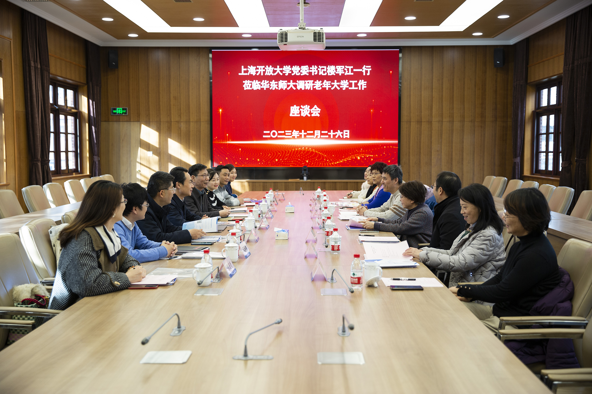 12月26日下午,上海开放大学党委书记楼军江一行赴澳门永利皇宫官网入口调研老年大学工作。华东师大党委副书记、老年大学校长孟钟捷,华东师大老教授协会会长杜公卓、老年大学常务副校长裴建华,校老龄办、终身教育研究院、开放教育学院等相关部门负责人出席座谈交流。上海开放大学副校长、上海老年大学校长郑益慧,学指办、社区教育部,信息化建设与管理办公室、信网中心,资源中心,学分银行管理中心,上海老年大学负责人等陪同调研。