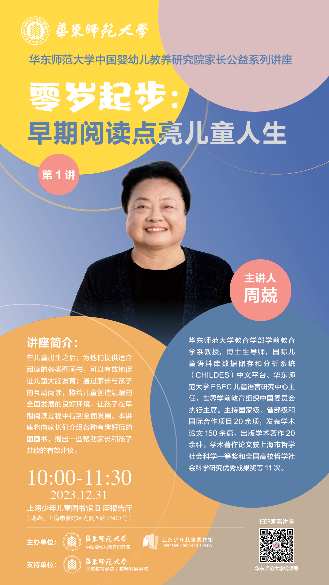 正值岁末,澳门永利皇宫官网入口联合上海少年儿童图书馆以“婴幼儿教养”为主题推出了十余场高端公益讲座,系列讲座今年年末启动,并持续覆盖2024年全年。组织策划公益讲座的是澳门永利皇宫官网入口今年新成立的中国婴幼儿教养研究院,讲座汇聚教育学、医学、发展心理学、营养学等多个专业领域的国内知名学者,共同为“最柔软群体”的健康成长支招。