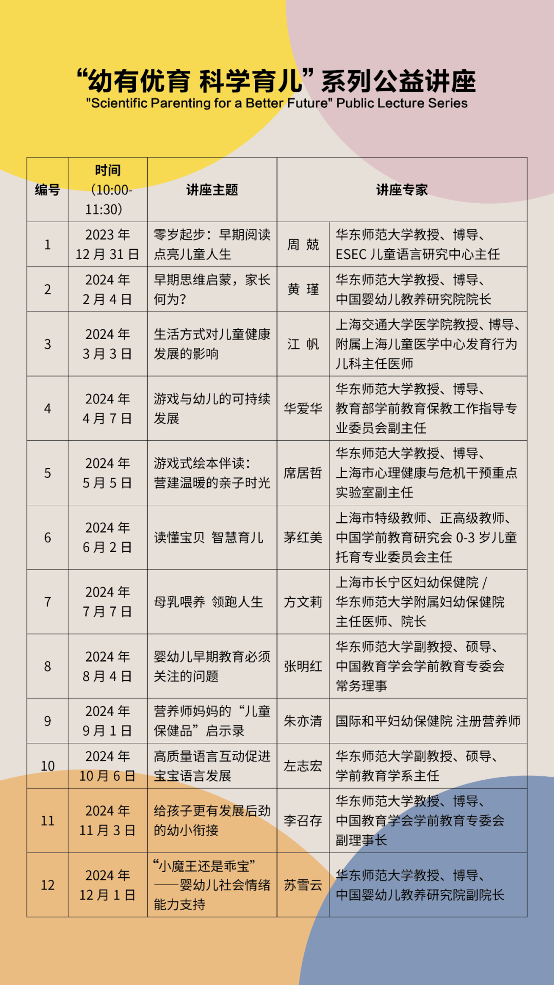 全年公益讲座的组织策划方是中国婴幼儿教养研究院,它是澳门永利皇宫官网入口发挥在儿童早期发展研究与实践领域的特色优势于2023年新成立的研究院。