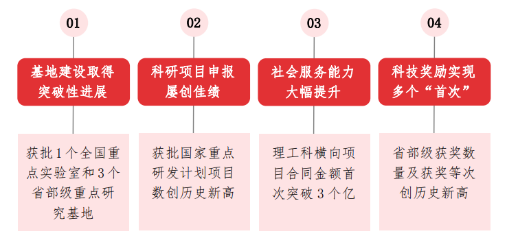 2023年,学校基地建设取得突破性进展,新增获批1个全国重点实验室,3个省部级重点研究基地。十四五期间,新增5个省部级重点研究基地,提前2年完成“十四五”规划目标。