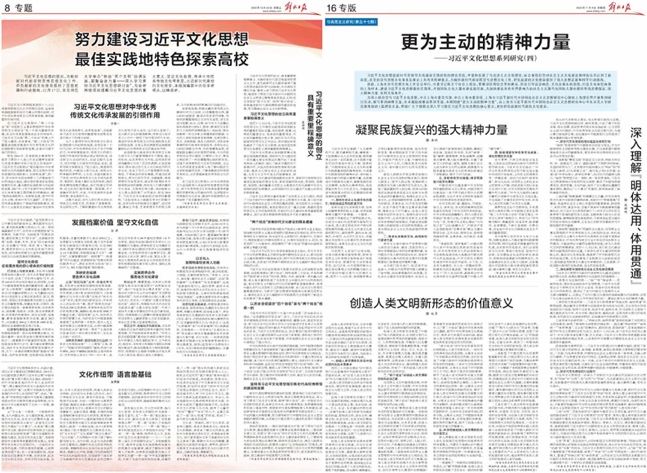 聚焦习近平总书记在文化传承发展座谈会上的重要讲话、就建设教育强国发表的重要讲话、对宣传思想文化工作作出的重要指示,一批专家学者在中国社会科学网、《光明日报》《解放日报》《文汇报》等重要媒体上刊发研究阐释文章。