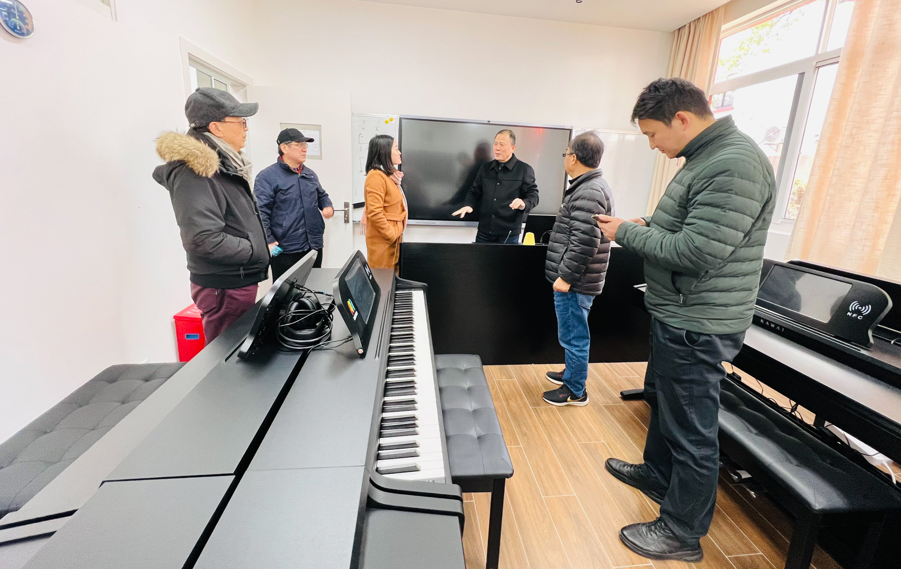 汇报结束后,专家组还实地察看了项目的完成情况,包括:文附楼、二附中实验楼、科学会堂的三间阶梯教室以及老年大学录播教室和钢琴教室,并对相关问题进行询问和讨论。
