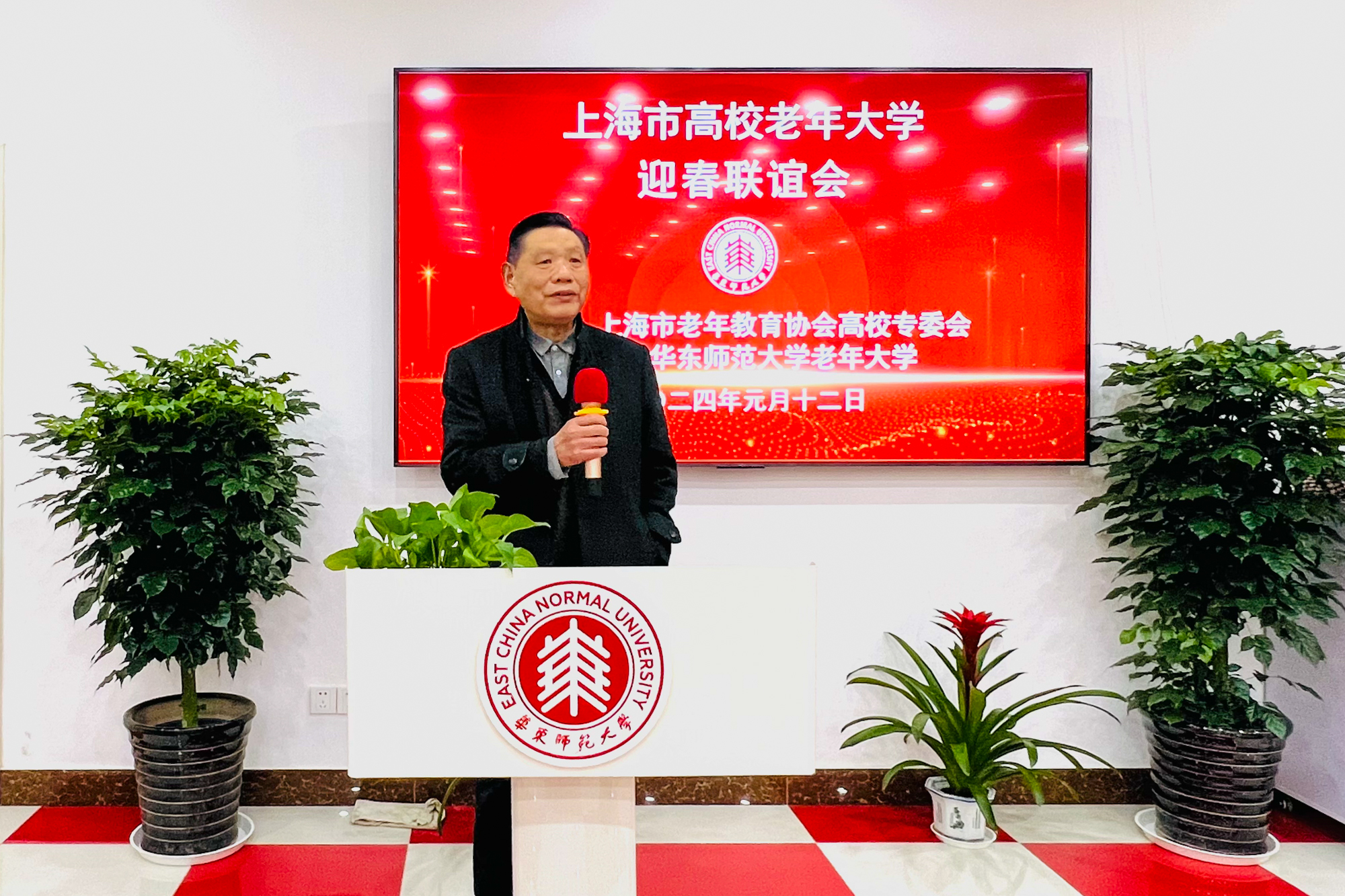 黄刚在致辞中感谢华东师大老年大学精心筹备了久违四年的迎春联谊会,上海高校老年大学的良好传统得以恢复和延续。华东师大接任上海高校老年大学专委会主任单位以来,活动连连、面貌焕然一新,赢得了大家的广泛赞誉。这次联谊会为同仁们提供了一个难得的机会,可以畅叙友情、相互交流、切磋探讨、取长补短,对推进共同事业的发展起到积极推进作用。