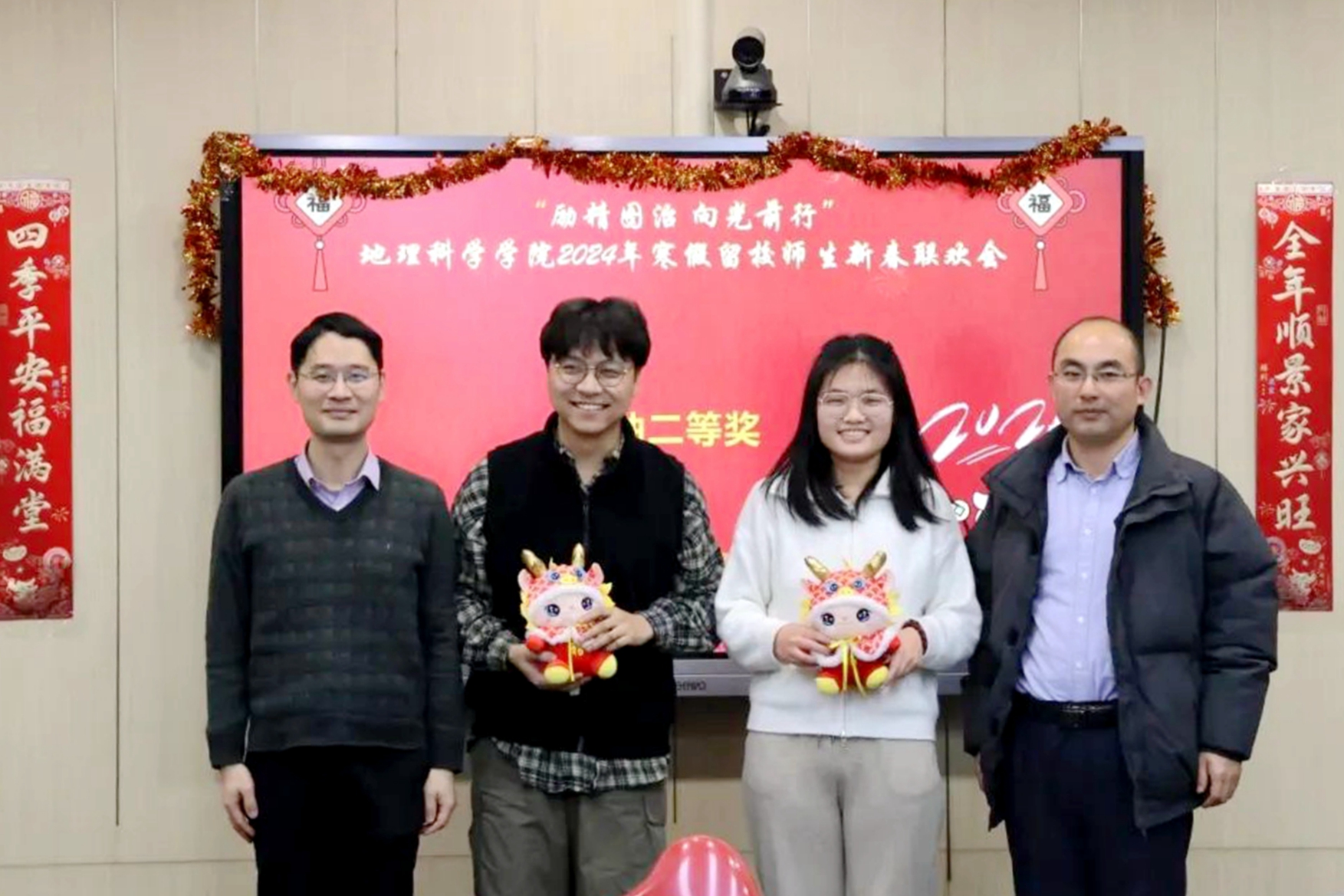 “励精图治 向光前行”地理科学学院寒假留校师生新春茶话会上,学院教师与40余名留校学生参与活动。新春至,留校师生团聚一堂,聚焦“三大卓越工程”“五个一流行动计划”,畅谈奋斗目标,共同许下美好愿望。