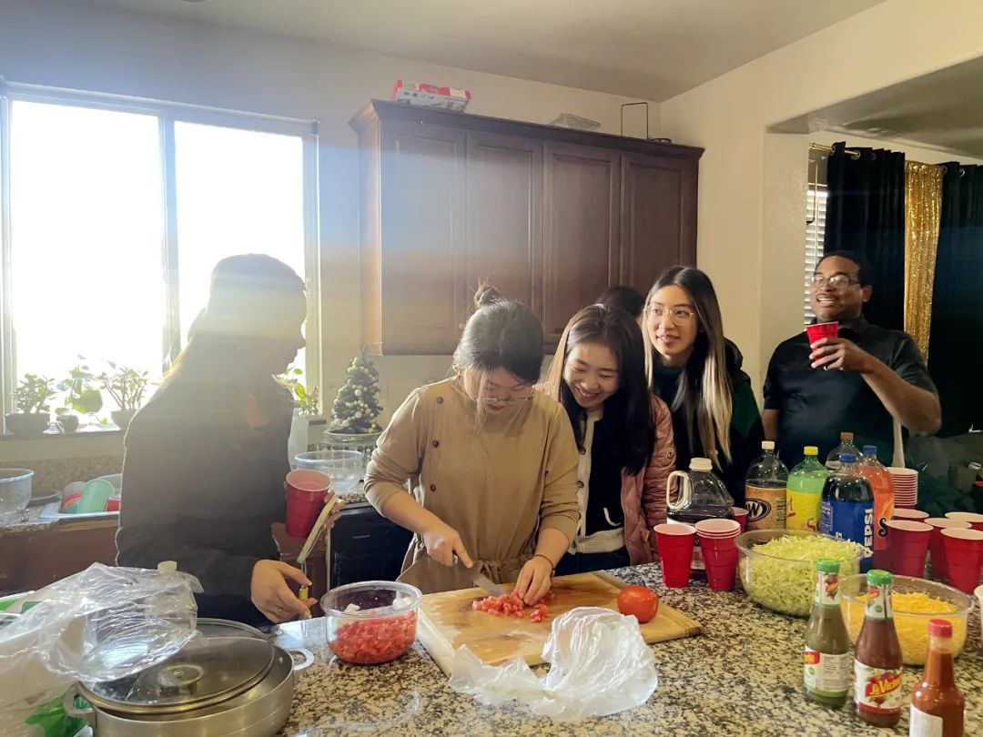经济与管理学院硕士生汪欣冉和同学们一起为寄宿家庭准备了中国节日的必备美食——饺子。“在和面、包饺子的过程中,我向他们介绍了饺子的历史和中国的饮食文化。希望通过有参与感的体验,让他们对中国文化有更深刻的了解。”