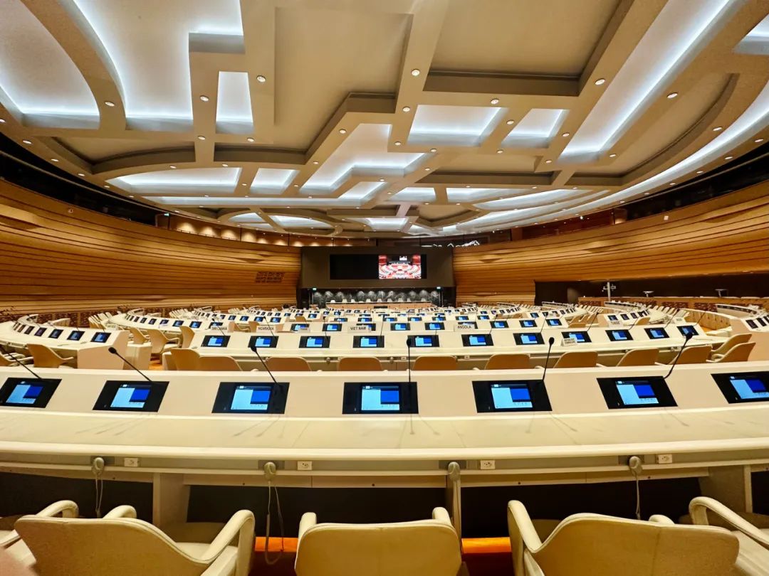 参访学生团队在联合国会议室中开展了模拟联合国活动。外语学院本科生饶斯羽谈道:“各国就一事项达成协议是十分困难的,包含了太多利益的取舍和辩论的技巧。联合国给予了每个国家平等发声的权利,致力于合作和达成共识,是十分了不起的存在。”