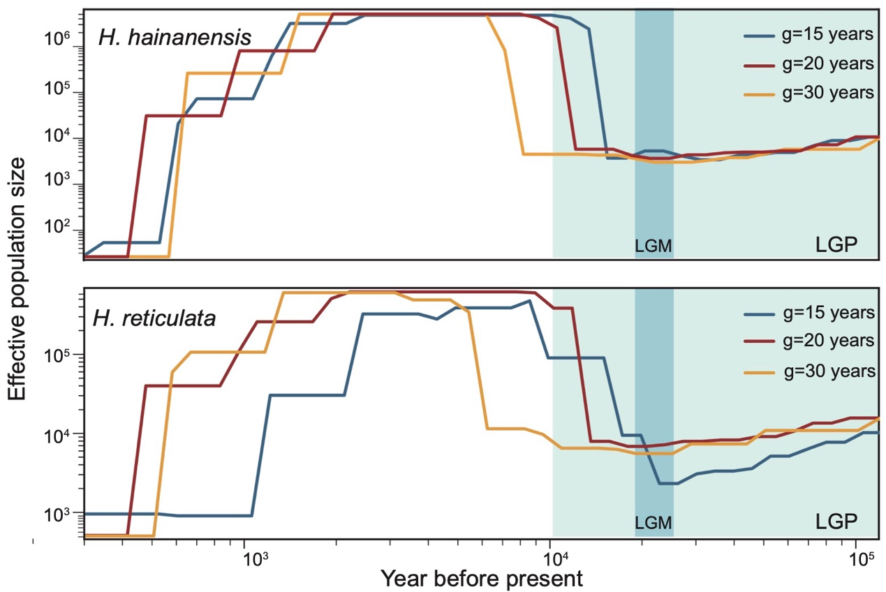 更为重要的是,通过采集坡垒与无翼坡垒样本进行种群基因组分析,发现这2个物种的有效种群大小从约2000年前开始急剧下降,在如此短的时间内下降了至少3个数量级(图3)。这一结果表明人类干扰是导致龙脑香物种濒危的主要原因。因此,保护这类物种的关键是限制采伐、避免土地利用变化等。令人欣慰的是,相较于其他濒危植物,目前这2个物种基因组中积累的有害等位基因较少(图4),有利于这些物种的恢复。