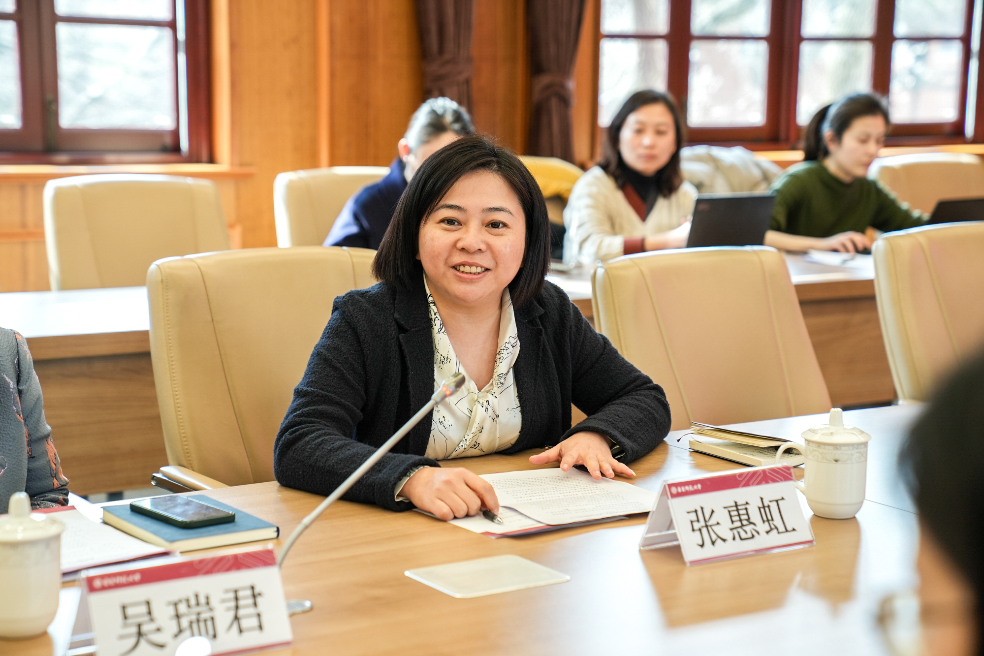 全国人大代表、华东师大党委书记梅兵,华东师大党委副书记孟钟捷,全国政协委员、民进中央委员、民进上海市委副主委、华东师大副校长戴立益,全国政协委员、农工党华东师大委员会主委、华东师大图书馆馆长吴瑞君,全国政协委员、致公党上海市委副主委、致公党华东师大委员会主委、华东师大国家教育宏观政策研究院副院长张文明,华东师大党委常委、统战部部长、学校办公室主任张惠虹,华东师大党委宣传部常务副部长刘麒出席会议。会议由刘麒主持。