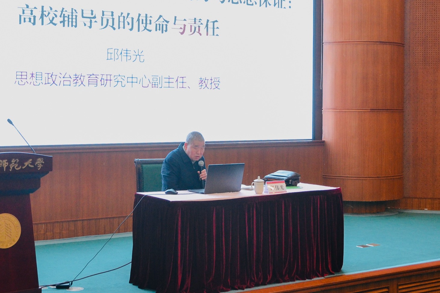校思想政治教育研究中心副主任、马克思主义学院特聘教授邱伟光作辅导报告