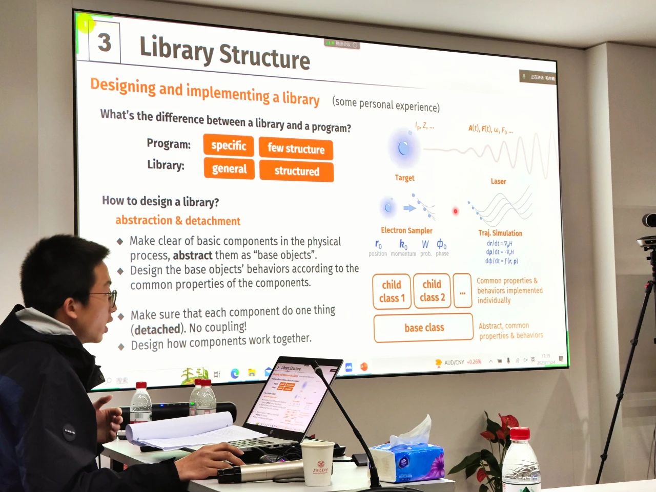 朱明宇在学术交流会上作英文学术报告