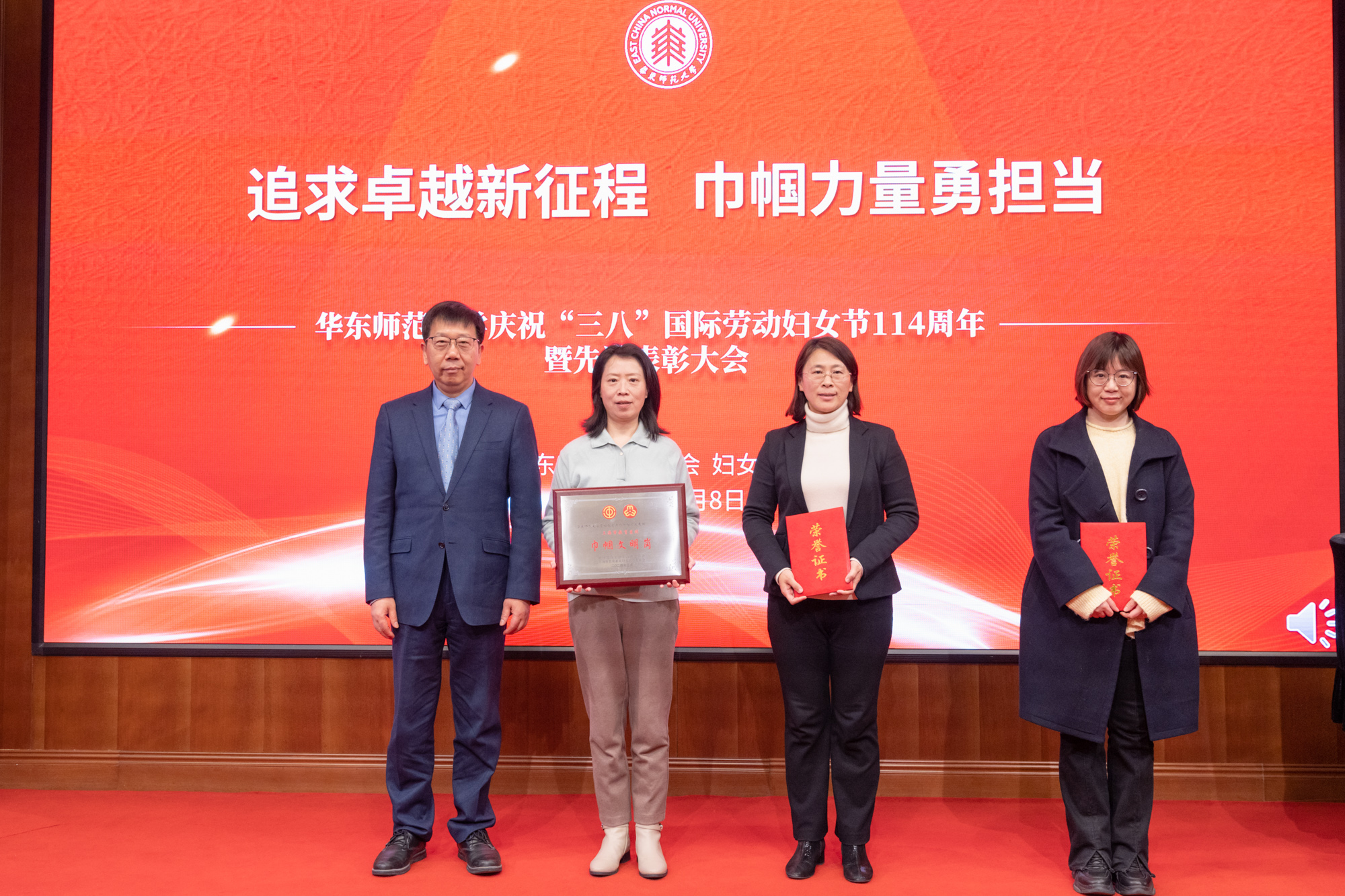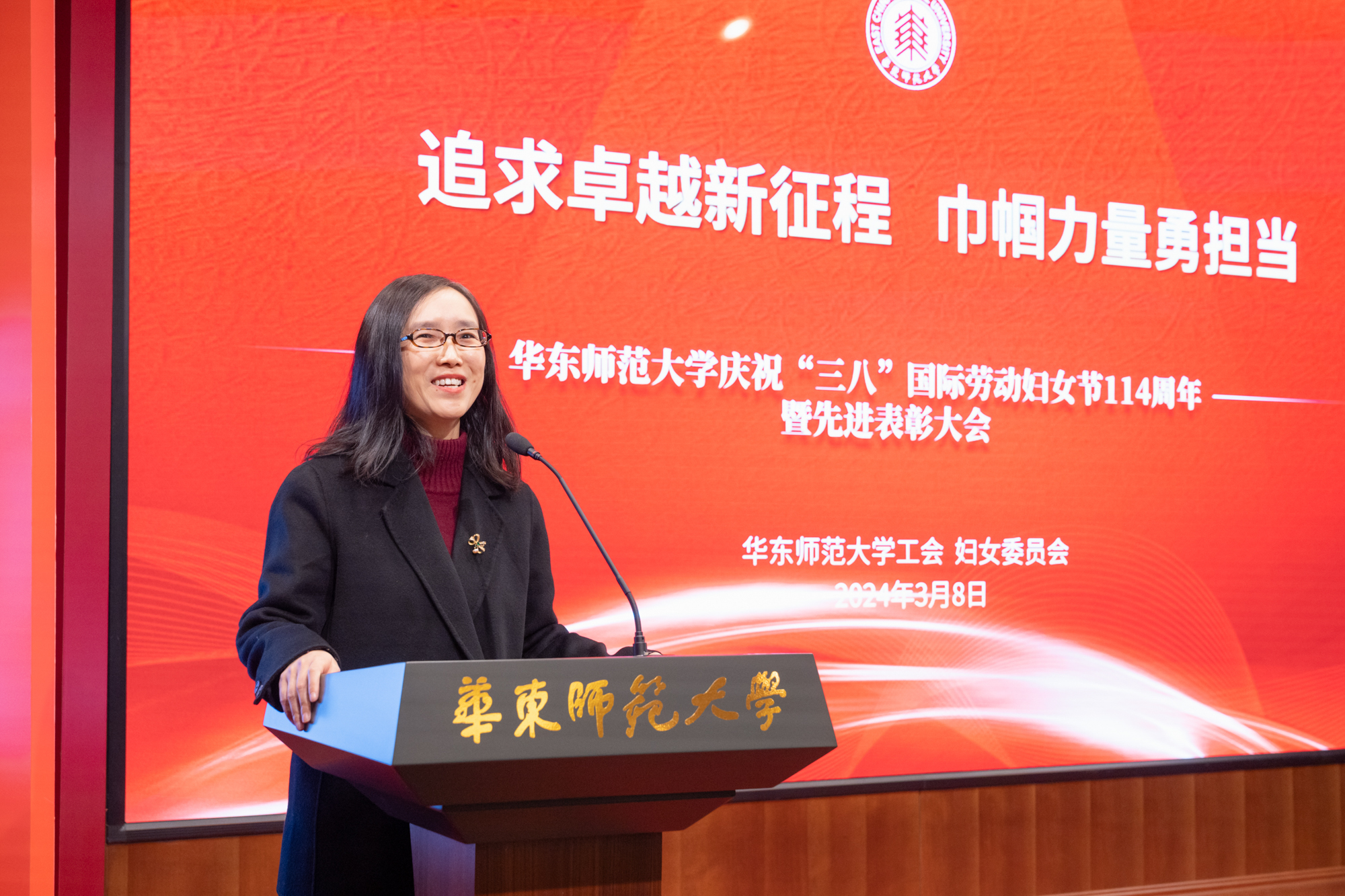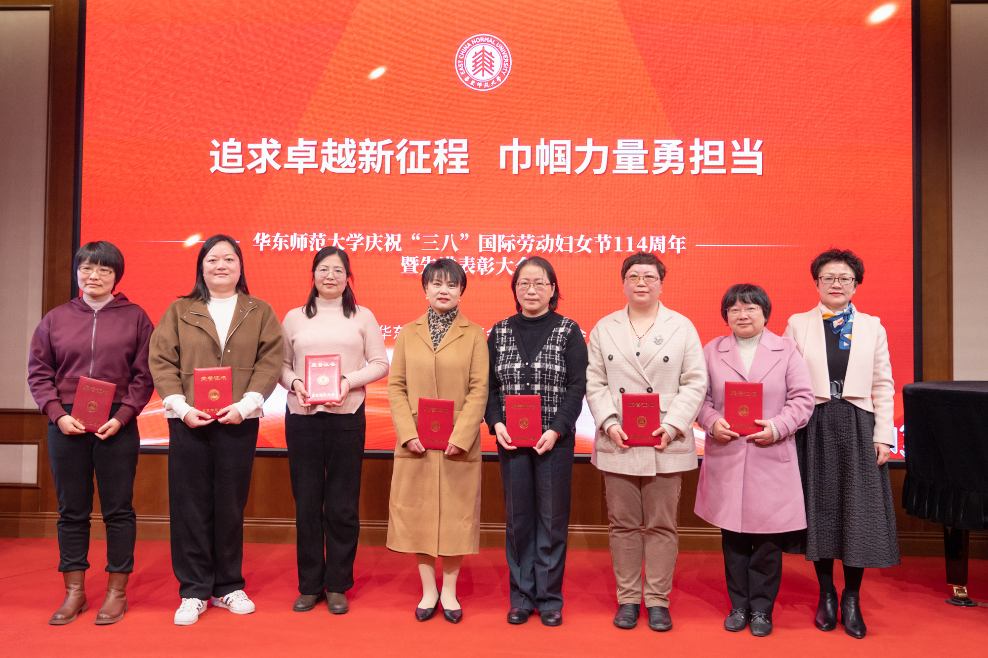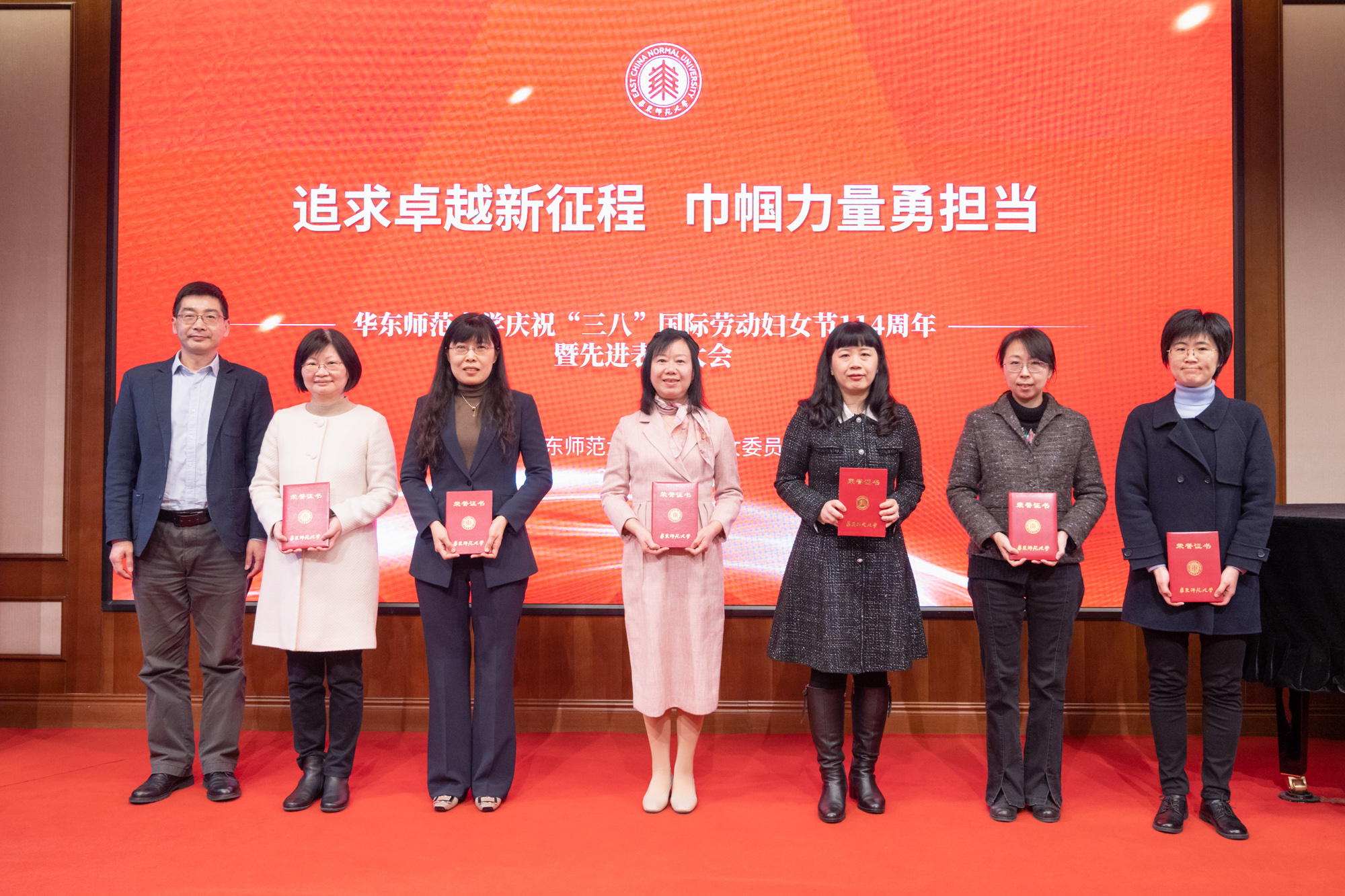 3月8日上午,华东师大纪念“三八”国际劳动妇女节114周年暨先进表彰大会在普陀校区工会一楼多功能厅举行。校工会两委委员,妇委会委员、各部门工会主席、女工委员、女大学生代表以及获得各类荣誉称号的先进个人和先进集体代表等参加了表彰会。校领导钱旭红、顾红亮和程静出席会议,并为获奖个人和单位颁奖。