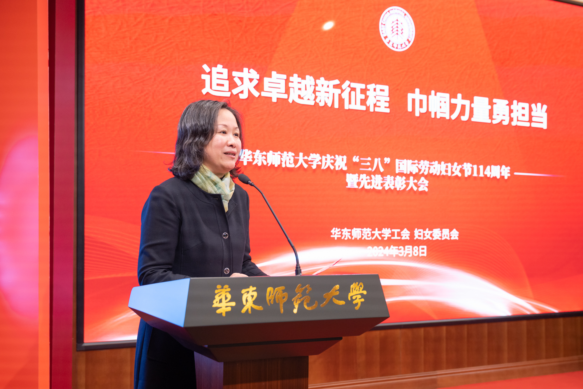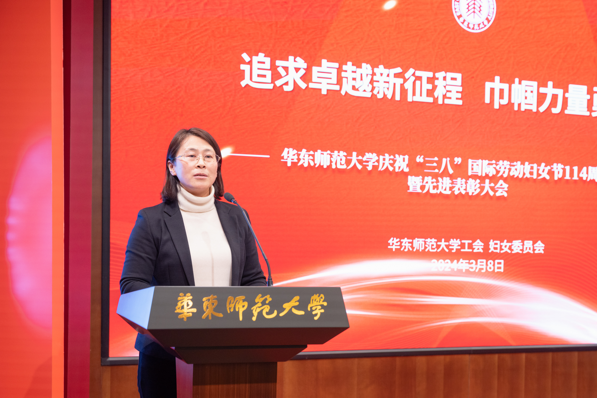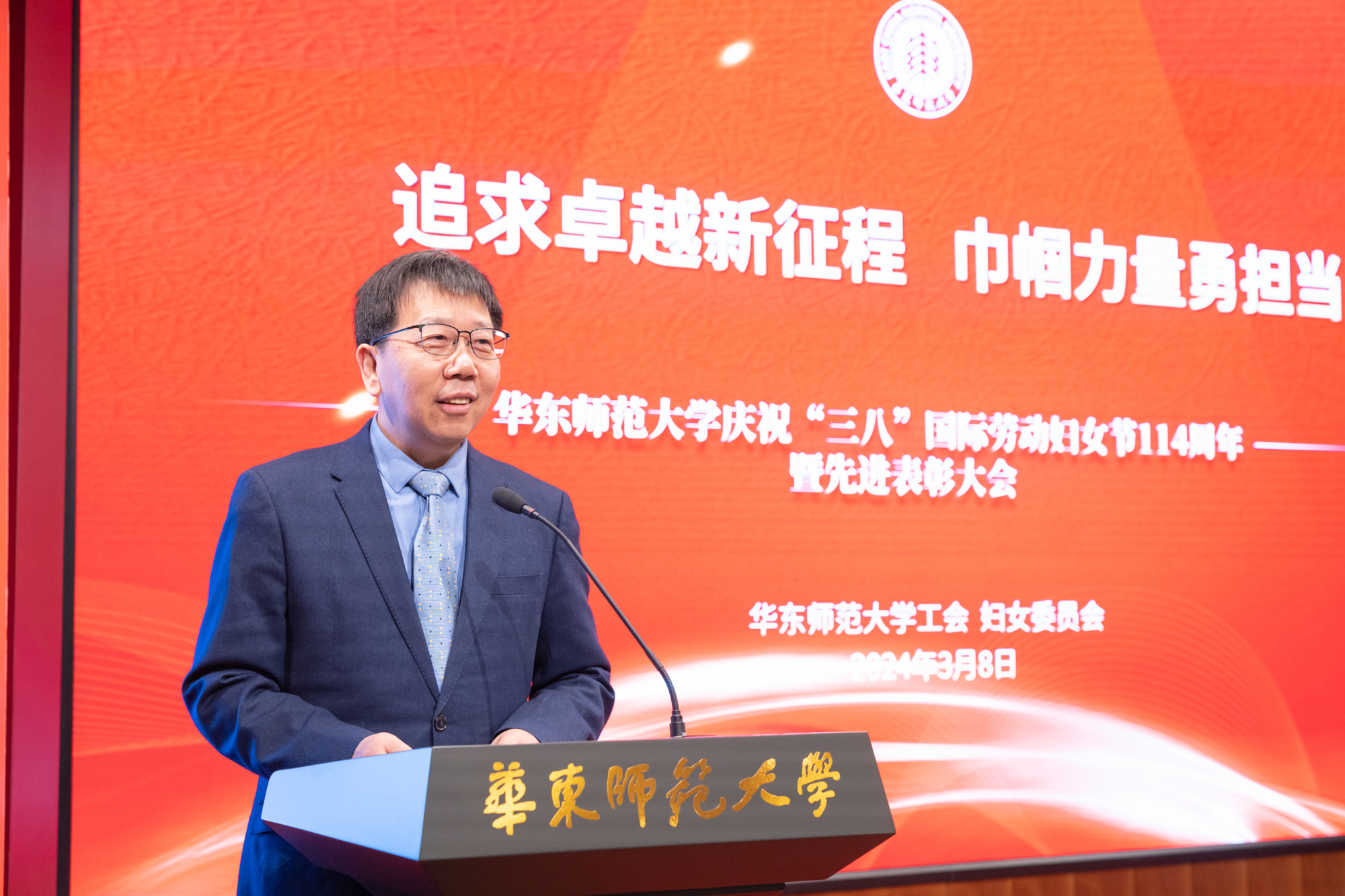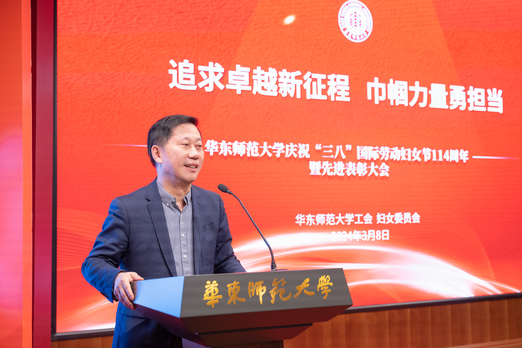 3月8日上午,华东师大纪念“三八”国际劳动妇女节114周年暨先进表彰大会在普陀校区工会一楼多功能厅举行。校工会两委委员,妇委会委员、各部门工会主席、女工委员、女大学生代表以及获得各类荣誉称号的先进个人和先进集体代表等参加了表彰会。校领导钱旭红、顾红亮和程静出席会议,并为获奖个人和单位颁奖。