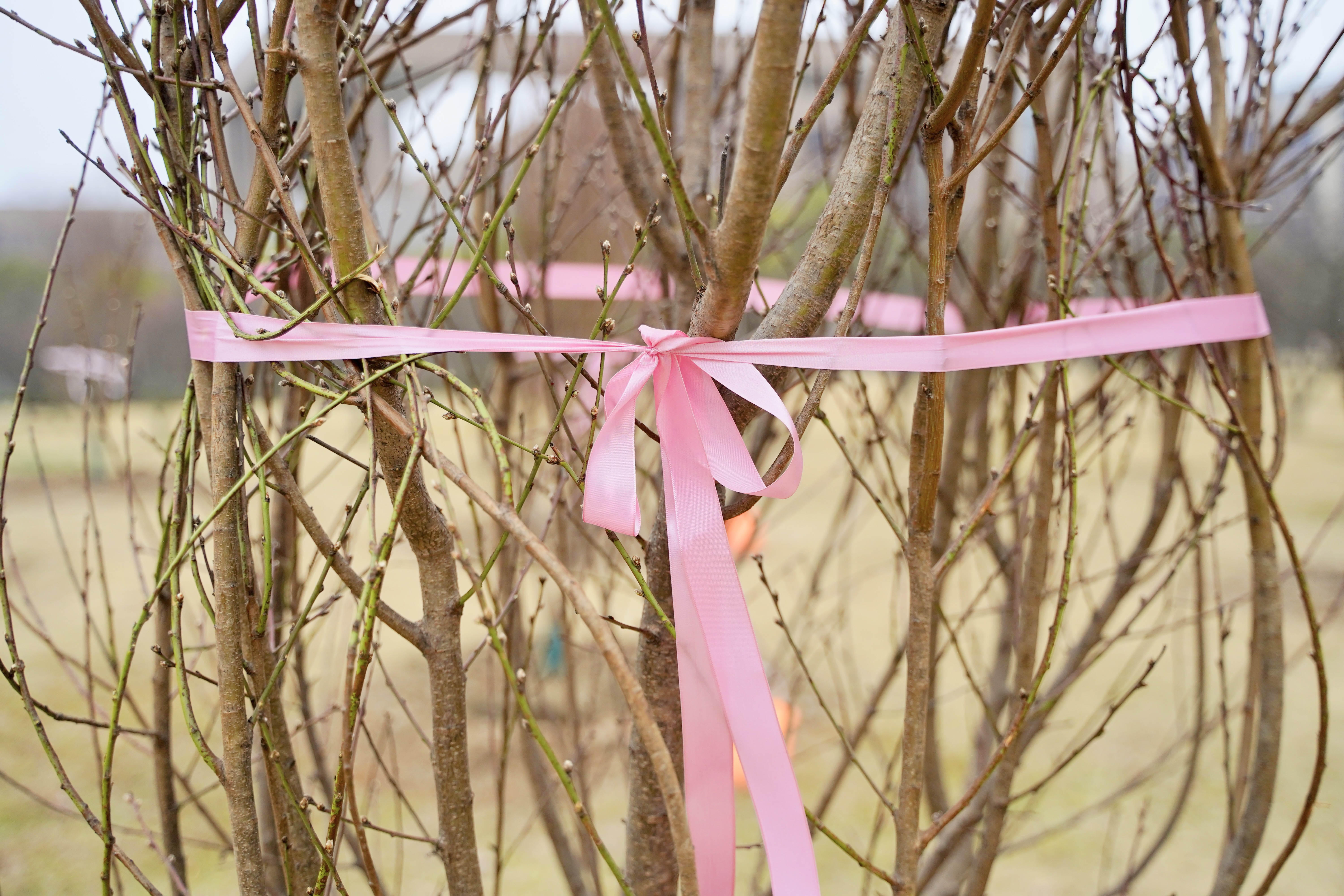 种下桃树后,师生们为每棵树挂上专属“植物铭牌”,扫描铭牌上的二维码,可进入“芳秾”小程序(取自《木兰花慢·杜鹃声渐老》中的“且持杯秉烛,天香院落,同赏芳秾”)。师生为桃树系上丝带,承载了“十年树木,百年树人”的美好祈愿和 “桃李芬芳”的美好寓意。