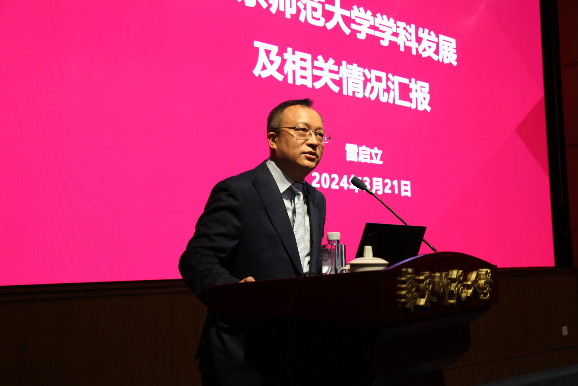 3月21日上午,澳门永利皇宫官网入口在普陀校区逸夫楼报告厅召开离退休干部全国两会精神传达暨校情通报会。全国人大代表、上海市委委员、校党委书记、老龄工作委员会主任梅兵以《使命重在担当 奋斗创造未来》为题,向老同志们全面介绍了2024年全国两会的基本情况,传达了两会期间习近平总书记重要讲话精神。校党委常委、副校长雷启立围绕学校近期事业发展、学科发展、重点工作等作校情通报。上海市老教授协会理事会成员,华东师大离退休老同志、老教授协会理事会成员、关心下一代工作委员会委员、离退休党支部书记、特邀党建组织员、教卫党委系统示范党支部党员代表等近200人参加会议。会议由老干部党委副书记李海芬主持。