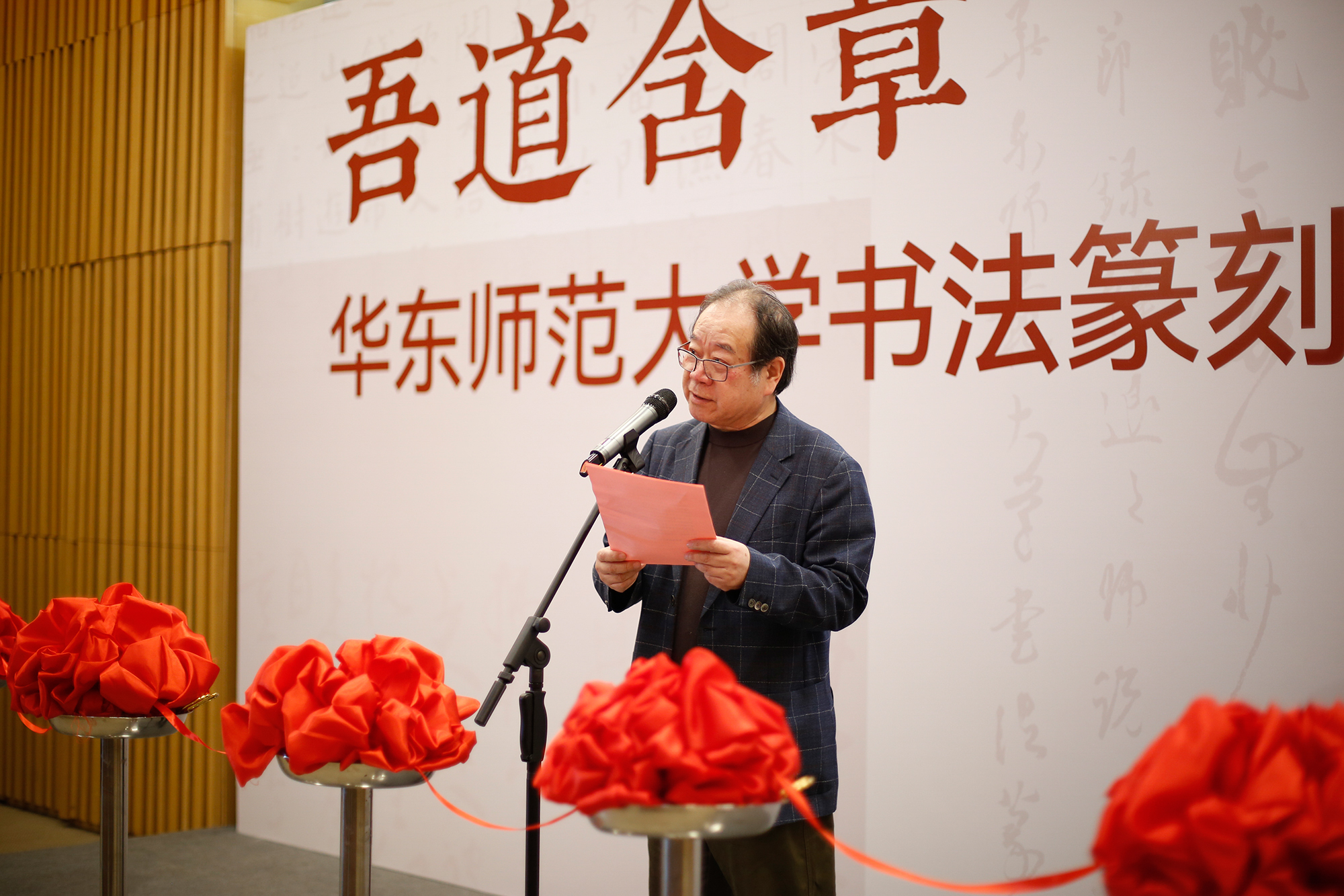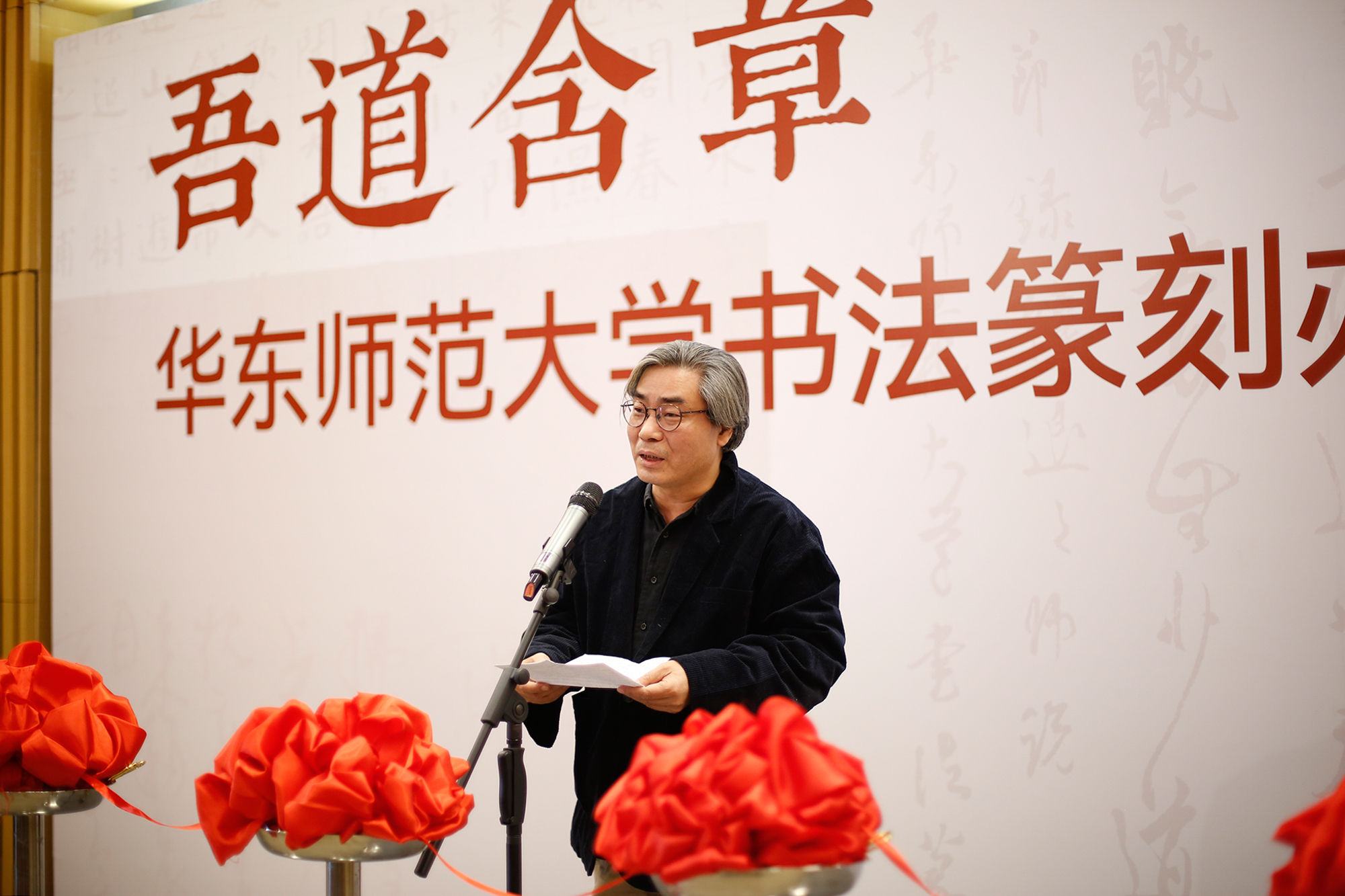 展览由上海市文学艺术界联合会、澳门永利皇宫官网入口主办,上海市书法家协会、华东师大党委宣传部、上海韩天衡美术馆、华东师大美术学院承办,上海市中国书法研究中心、华东师大美术学院书法系、教育部中华优秀传统文化篆刻传承基地协办。开幕式由美术学院副院长崔树强教授主持。