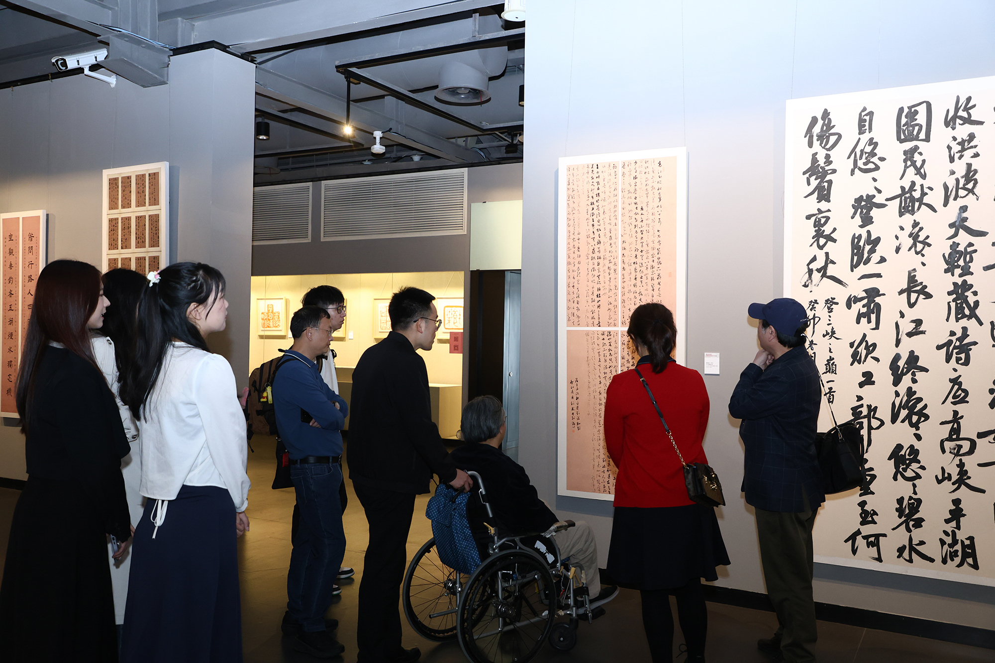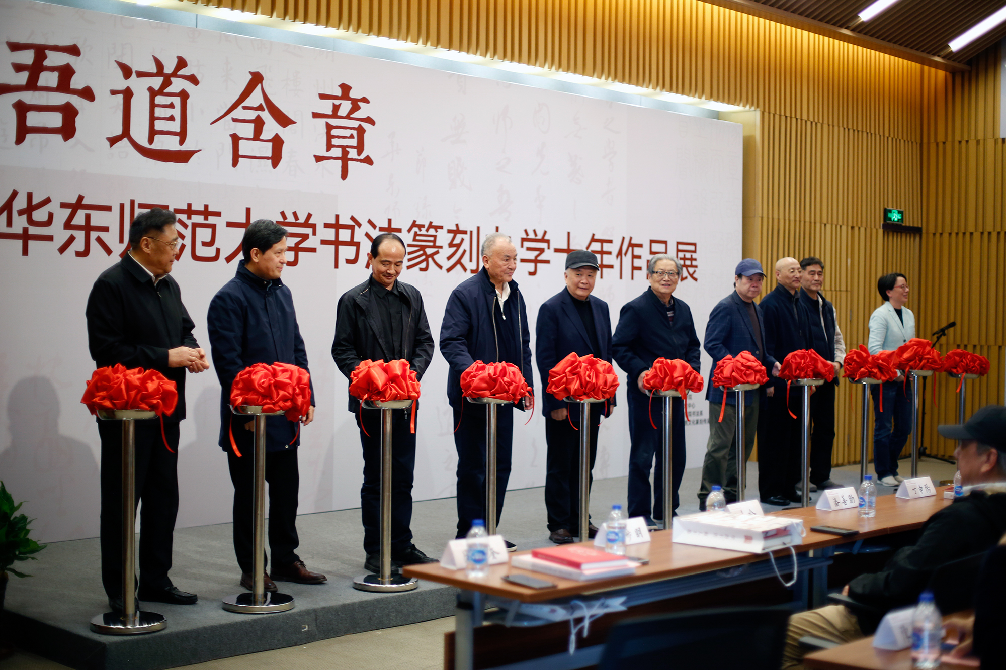 本次展览的举办也得到了中国书协以及北京师范大学、中国美术学院、南京艺术学院等兄弟院系的密切关注和支持。著名军旅书法家、少将高步明,温州市人民政府原市长钱兴中,上海文联原党组副书记、副主席迟志刚,上海书法家协会名誉主席周志高,中国雕塑协会会长、上海大学上海美术学院院长曾成钢、上海书法家协会副主席晁玉奎,上海古籍出版社原党委书记、社长高克勤,嘉定区文旅局局长何冬英,中国美术学院汉字文化研究所所长、教授曹锦炎,上海图书馆研究员仲威,著名碑帖专家俞丰,华东师大终身教授阮荣春,华东师大出版社董事长兼社长王焰,以及来自全国各地的120余名书法篆刻方向的研究生等出席开幕式。