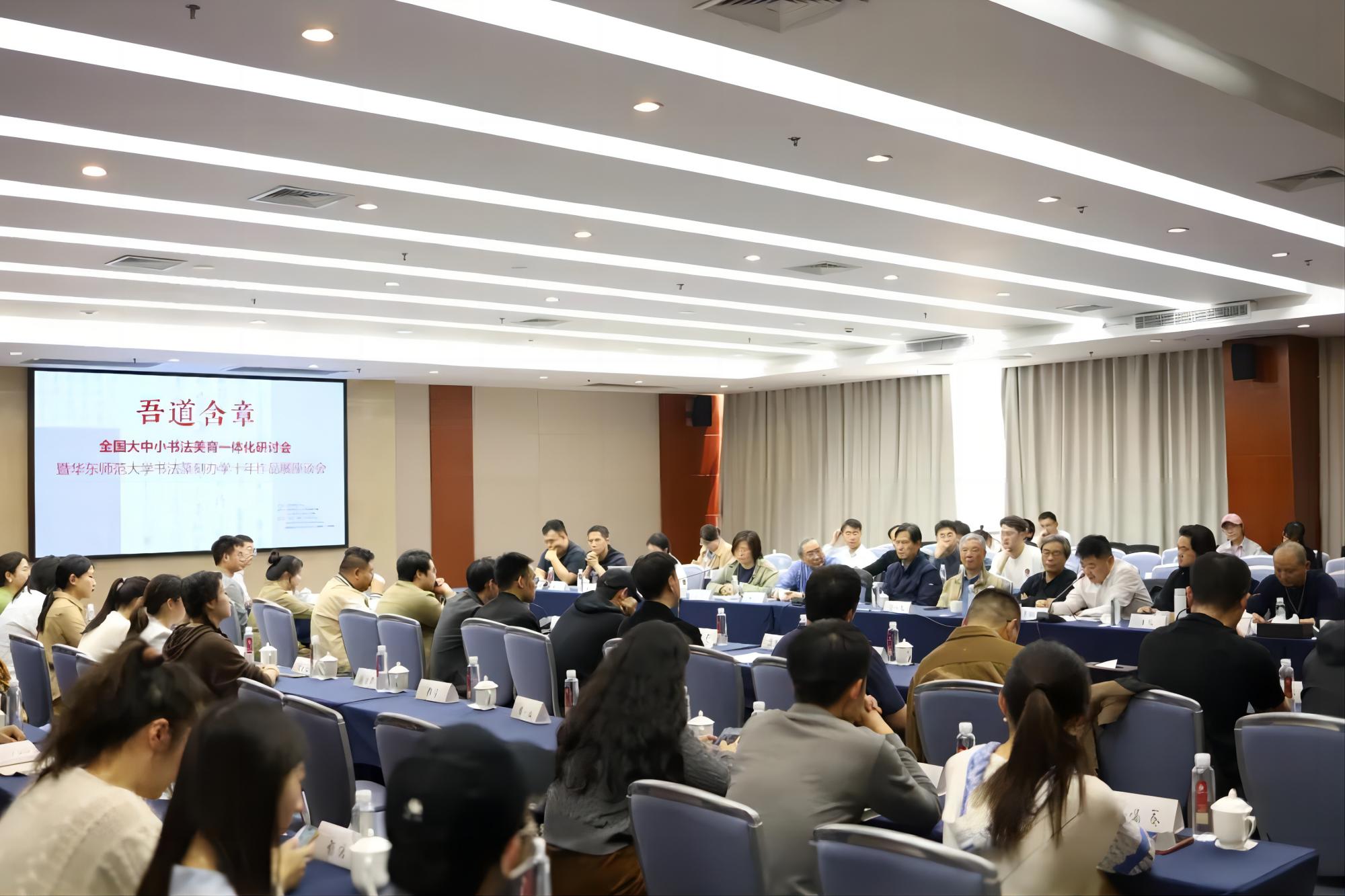 3月30日上午,全国大中小学书法美育一体化研讨会暨华东师大书法篆刻办学十年展作品座谈会在澳门永利皇宫官网入口教师之家举行