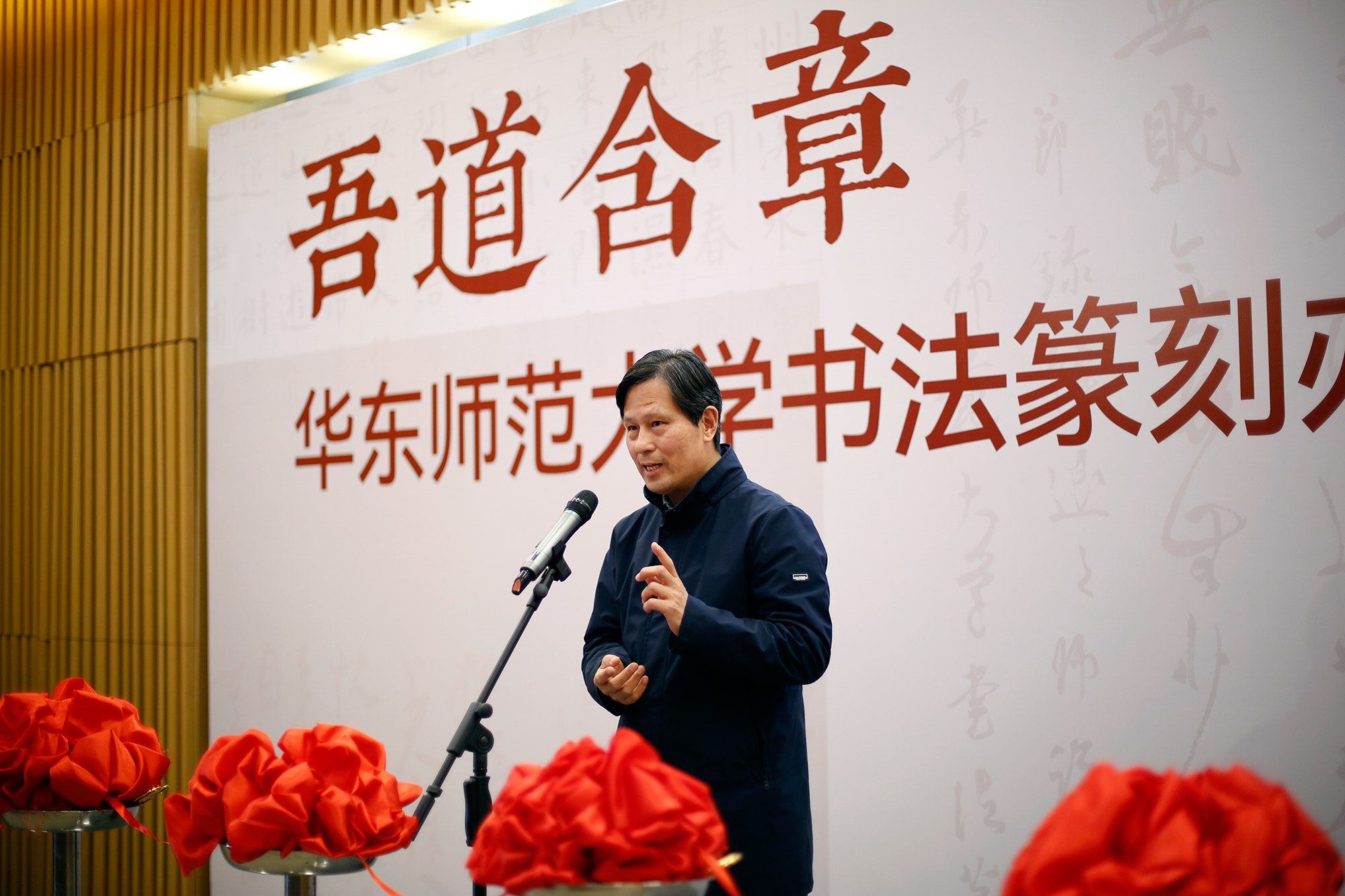 上海市文联副主席、上海书法家协会主席丁申阳在致辞中表示,华东师大书法篆刻方向的师生具有强烈的社会担当精神与大众美育传播责任感,他衷心祝愿书法篆刻教学成为中国书法教育的标杆,为全面弘扬中华优秀传统文化做好表率。