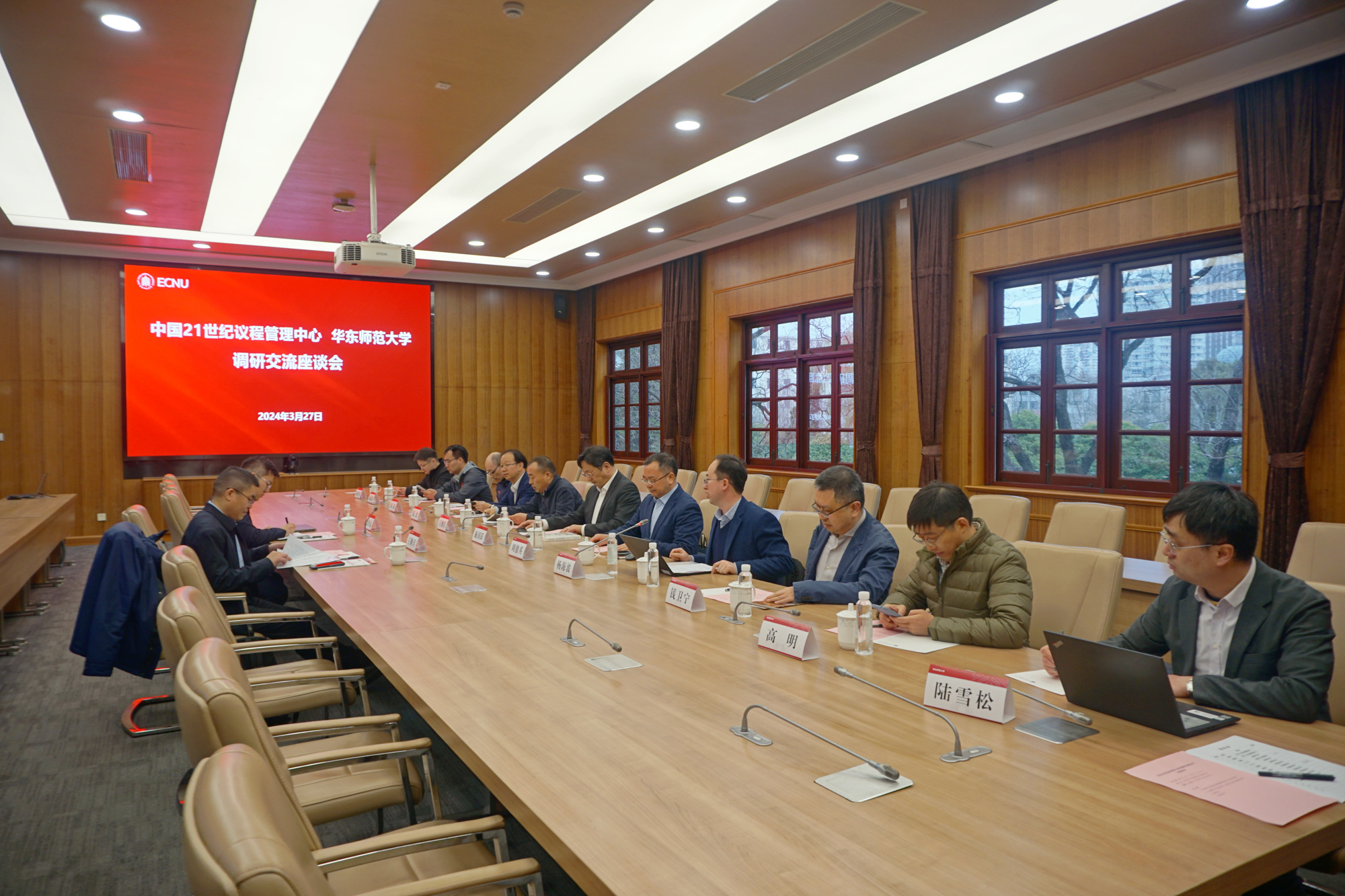 3月27日下午,中国21世纪议程管理中心社会处副处长(主持工作)王顺兵一行走访澳门永利皇宫官网入口,围绕智慧教育领域的研究成果和本年度拟举办的相关活动,以及对“社会治理与智慧社会科技支撑”重点专项在“十五五”期间的工作思考等进行专项调研。校党委常委、副校长施国跃,原副校长周傲英,科技处处长杨海波,数据科学与工程学院院长钱卫宁,上海体育大学党委副书记、副校长王继红,上海市宝山区教育局局长张治等参加了座谈。座谈会由杨海波主持。