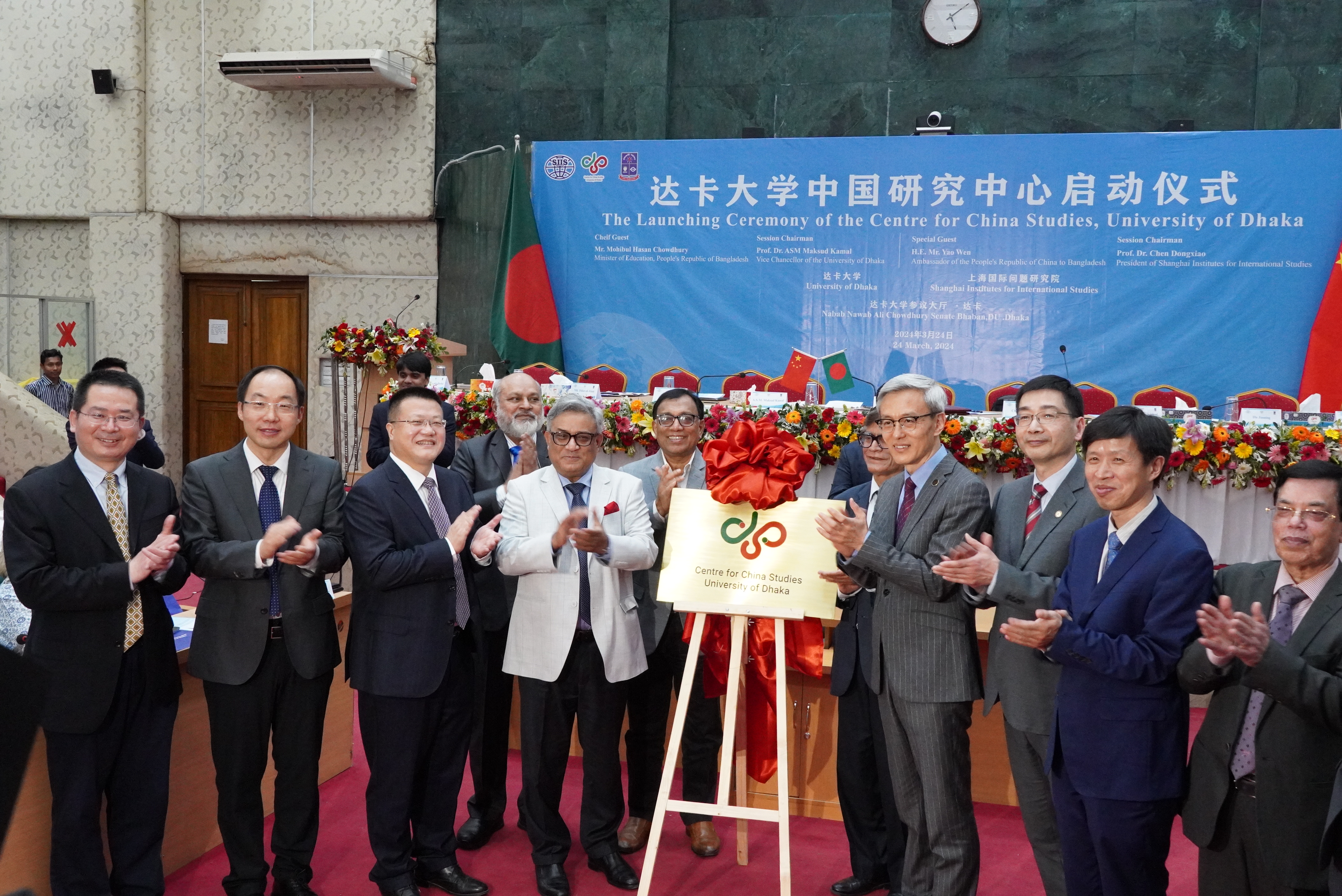 3月24日下午,孟加拉国达卡大学中国研究中心举办启动仪式。华东师大副校长顾红亮,中国驻孟加拉国大使姚文,达卡大学校长、达卡大学中国研究中心学术委员会副主席Maksud Kamal,上海国际问题研究院院长、达卡大学中国研究中心学术委员会主席陈东晓等代表一道,共同为中国研究中心揭牌。来自两国智库、媒体、高校学生代表等400余人参加启动仪式。