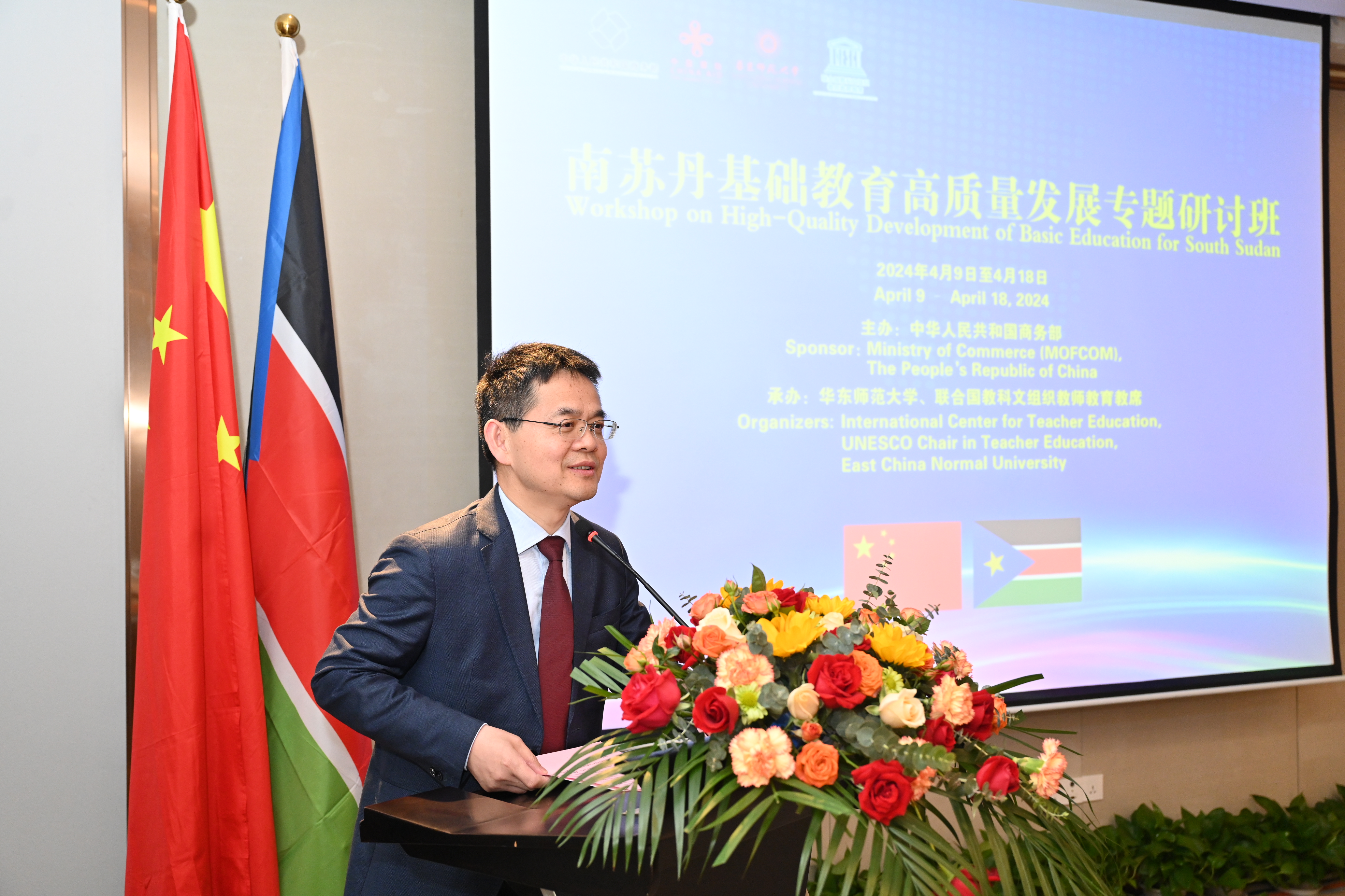 4月9日,由中国商务部主办、澳门永利皇宫官网入口承办的中国商务部南苏丹基础教育高质量发展专题研讨班开班仪式举行。华东师大党委书记、联合国教科文组织教师教育教席主持人梅兵,上海市商务委员会总经济师罗志松,华东师大教师教育学院院长代蕊华、国际教育中心副主任金丽君以及联合国教科文组织教师教育教席办公室相关工作人员参加了开班仪式。开班仪式由国际教师教育中心主任彭利平主持。
