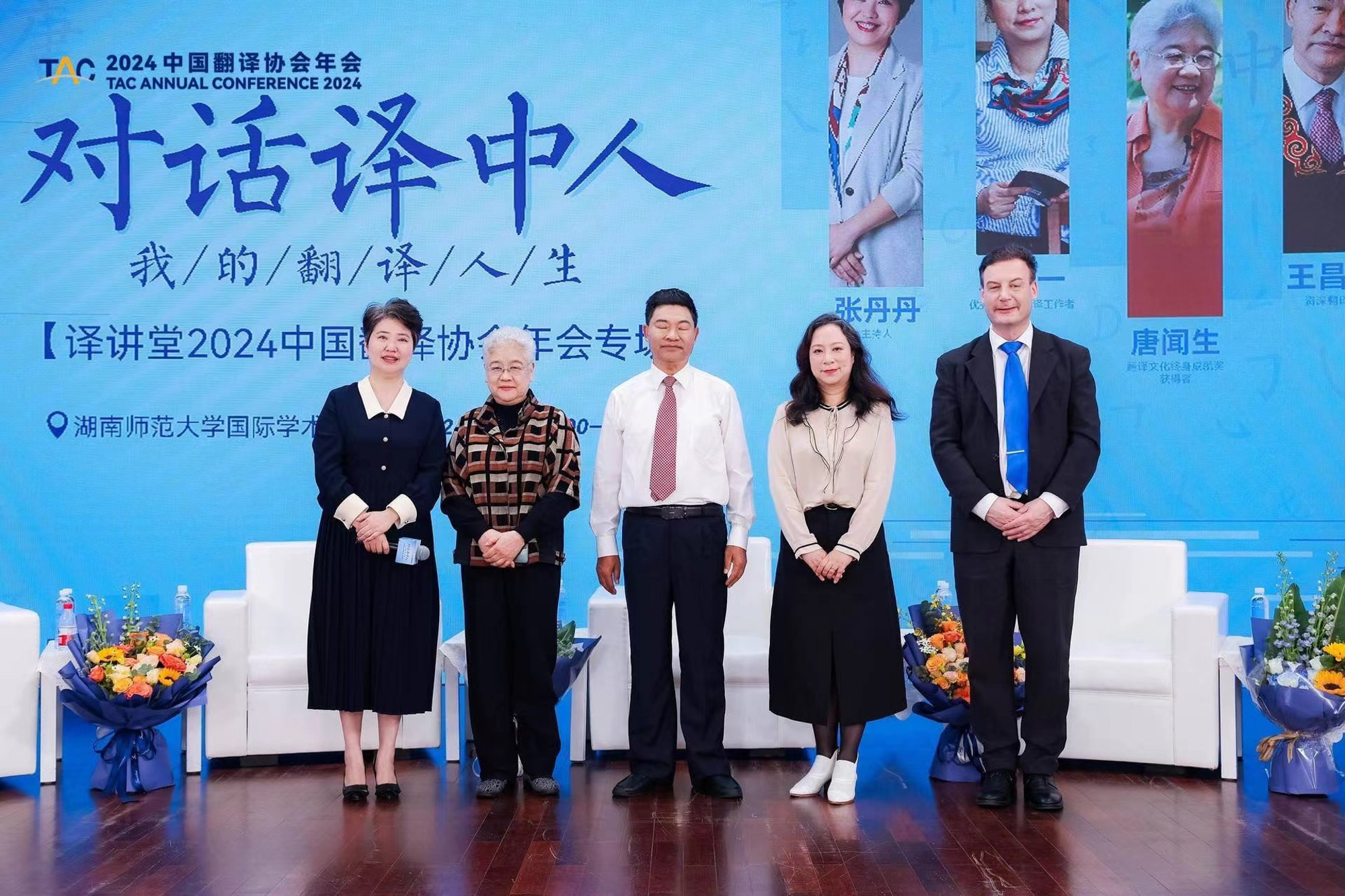 年会期间,袁筱一教授作为四位受访嘉宾之一,参加了由中国翻译协会主办、中国外文局翻译院与湖南师范大学外国语学院承办的“译讲堂”中国翻译协会年会专场活动——“对话译中人 我的翻译人生”。