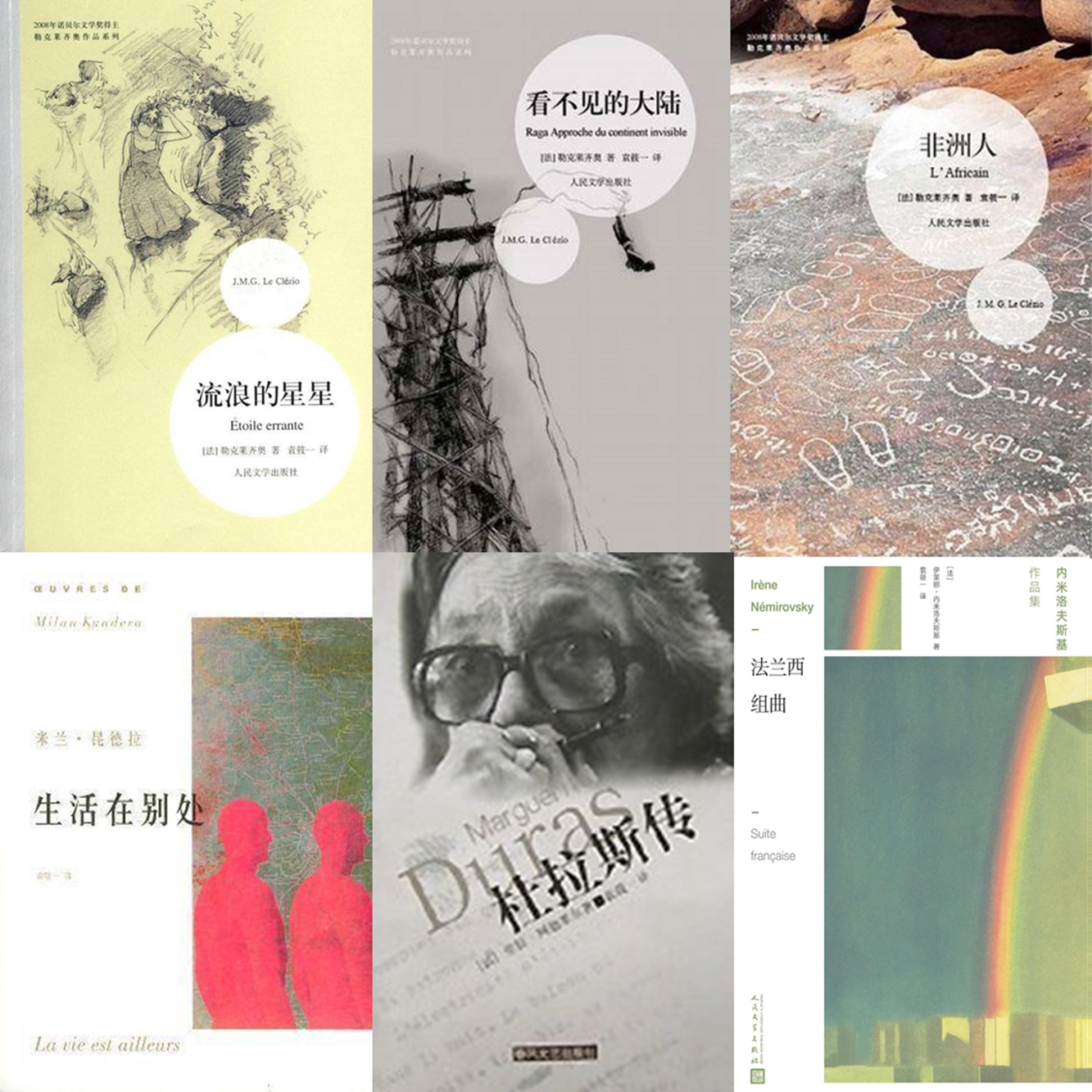 其他代表译作还有勒克莱奇奥(2008年诺贝尔文学奖)的《流浪的星星》、《看不见的大陆》、《非洲人》等;米兰﹒昆德拉的《生活在别处》、杜拉斯的《外面的世界》、劳尔﹒阿德莱尔的《杜拉斯传》、内米洛夫斯基的《法兰西组曲》、卢梭的《一个孤独漫步者的遐想》等,为法国当代文学在中国的翻译与传播做出了杰出贡献。