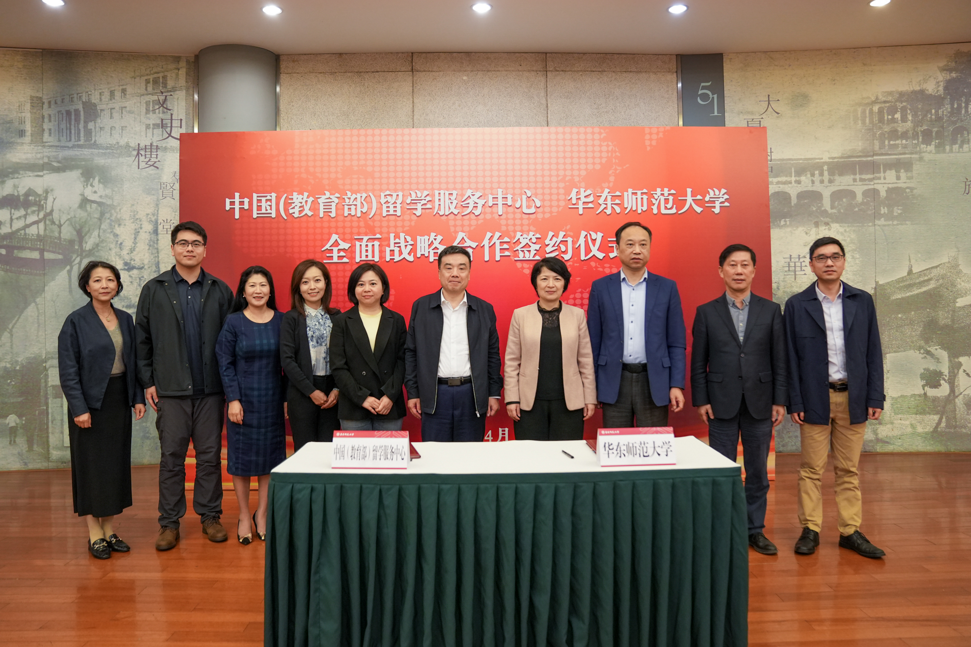 华东师大党委书记梅兵,教育部留学服务中心党委书记、主任王大泉代表双方签署全面战略合作协议。仪式由华东师大副校长戴立益主持。