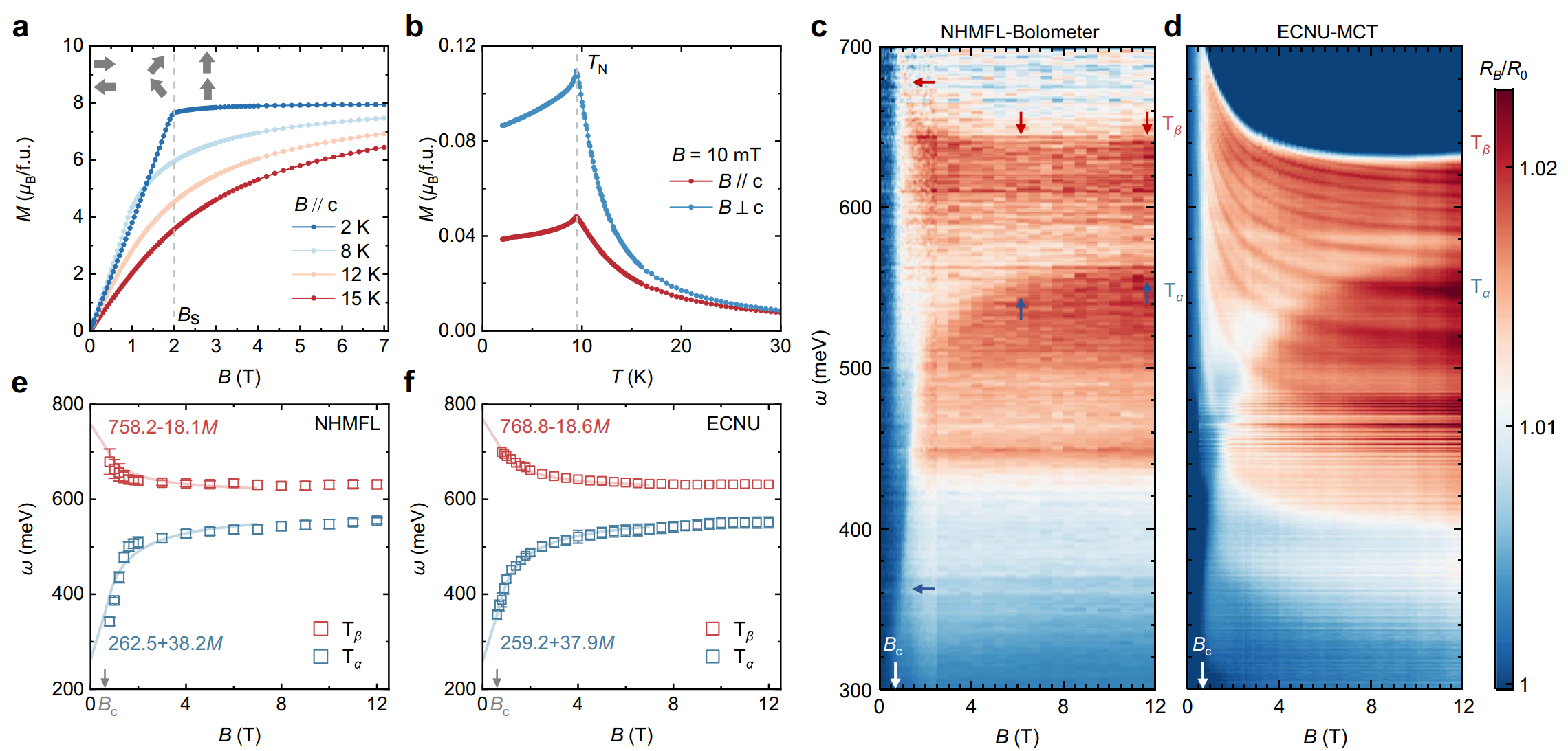 图3.拓扑磁体EuCd2As2的磁学性质和中红外磁光谱