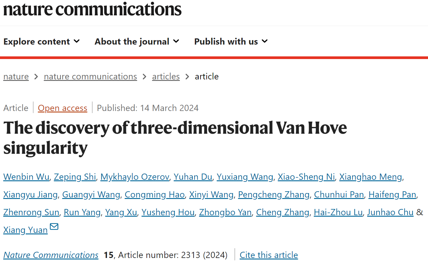 该研究成果近期发表在NatureCommunications15, 2313 (2024),澳门永利皇宫官网入口为第一完成单位,博士研究生吴闻彬和施泽平为论文的共同第一作者,袁翔教授为论文通讯作者。研究工作获国家重点研发计划青年项目、国家自然科学基金等支持。