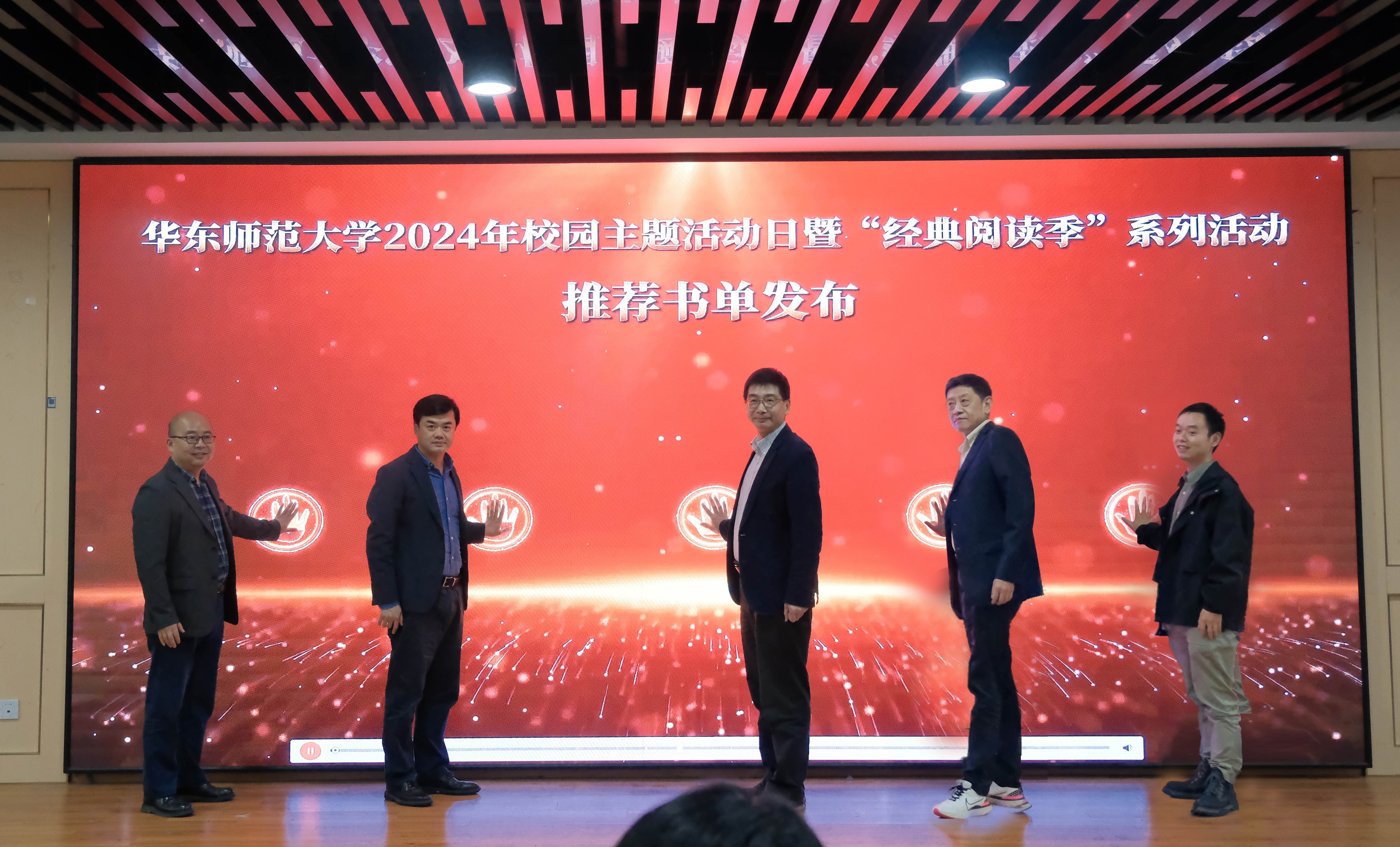 顾红亮、赵健、余南平、王健和周杰共同发布了2024年“经典阅读季”推荐书单。参与活动的学生现场挑选了推荐书目中的心仪书籍。
