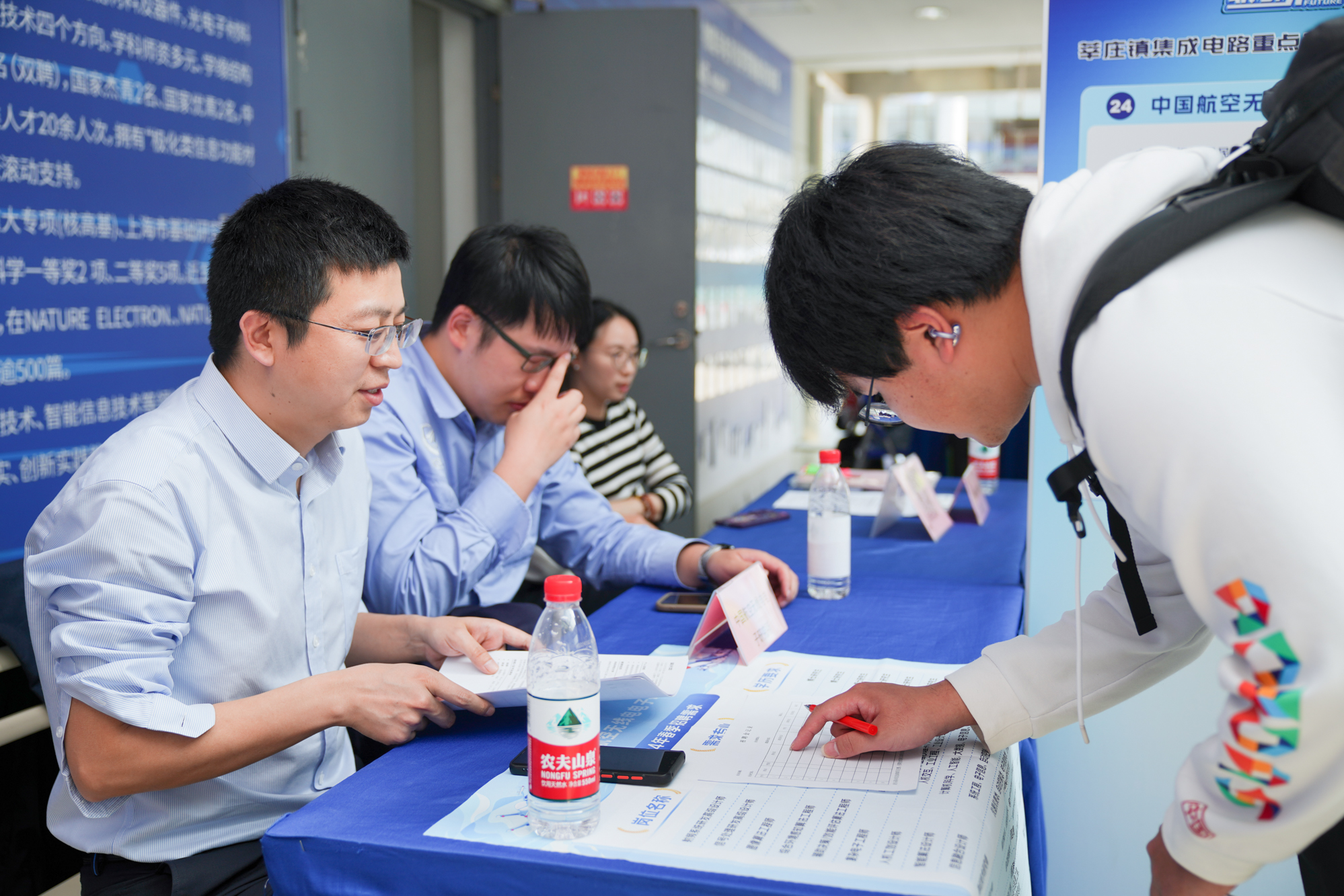 此次专场招聘会是通信与电子工程学院与莘庄镇人民政府、集成电路相关企业在2023年达成三方共建框架协议下,一次共联共建成果的有效落地。现场共有近30家集成电路、工业软件等领域企业参与招聘,展位前人头攒动,气氛热烈,优质岗位吸引了众多学子前来参加。