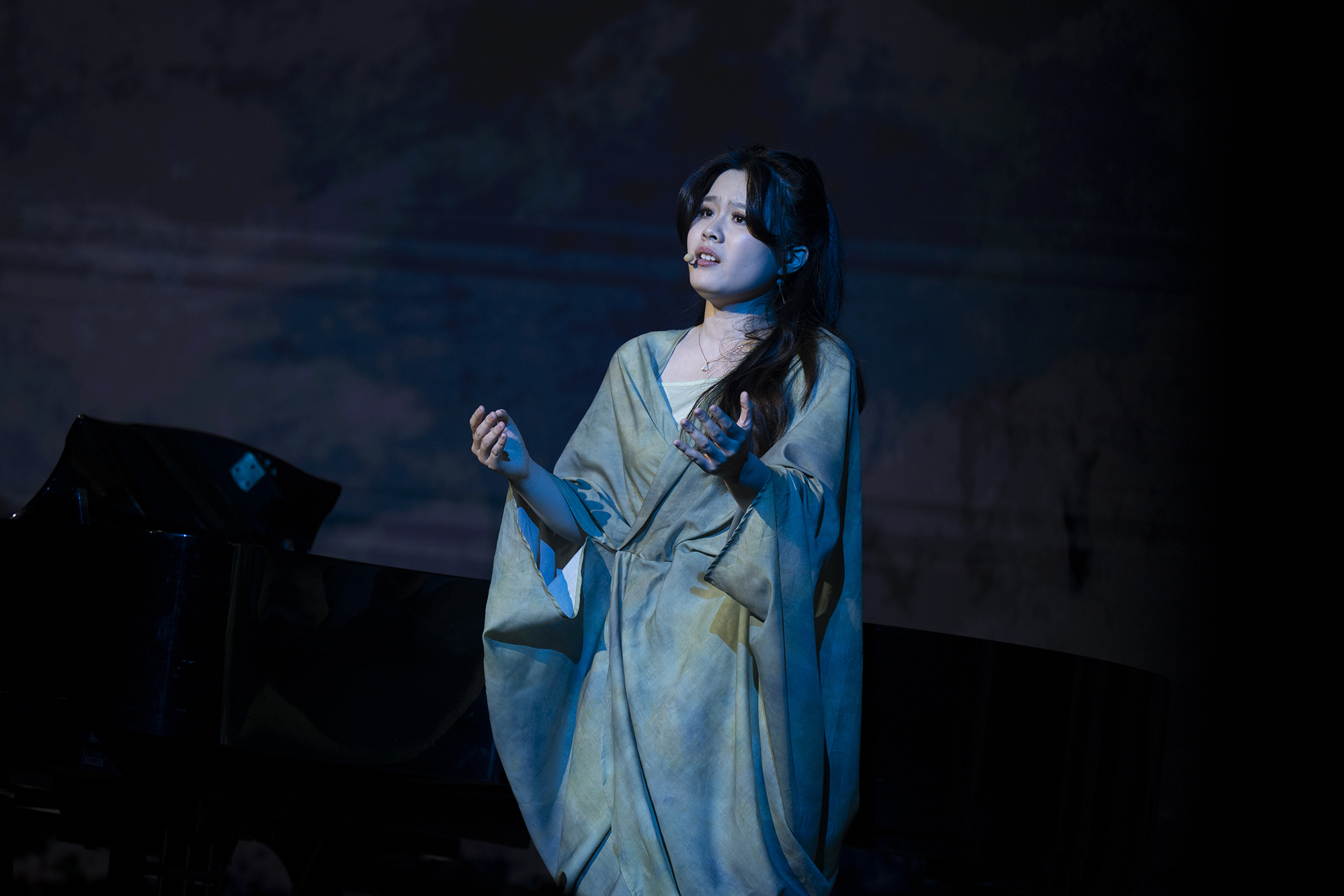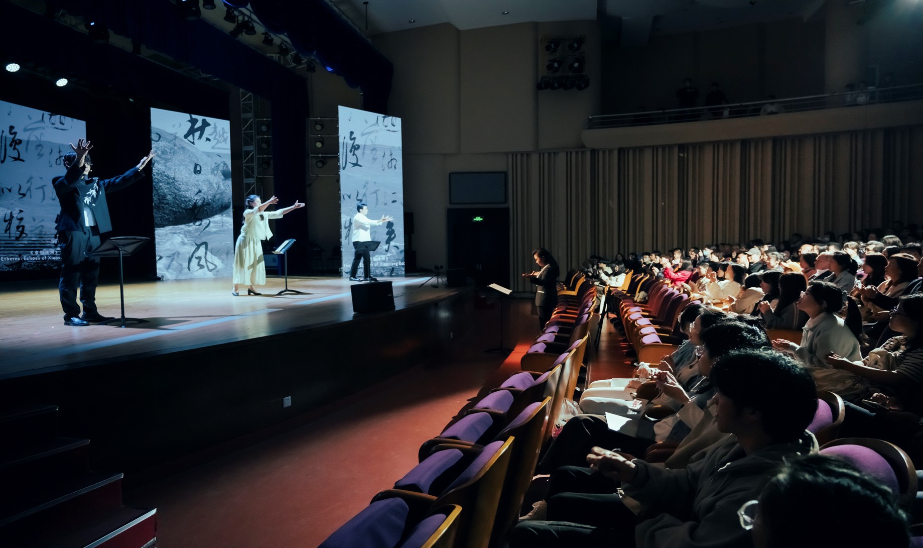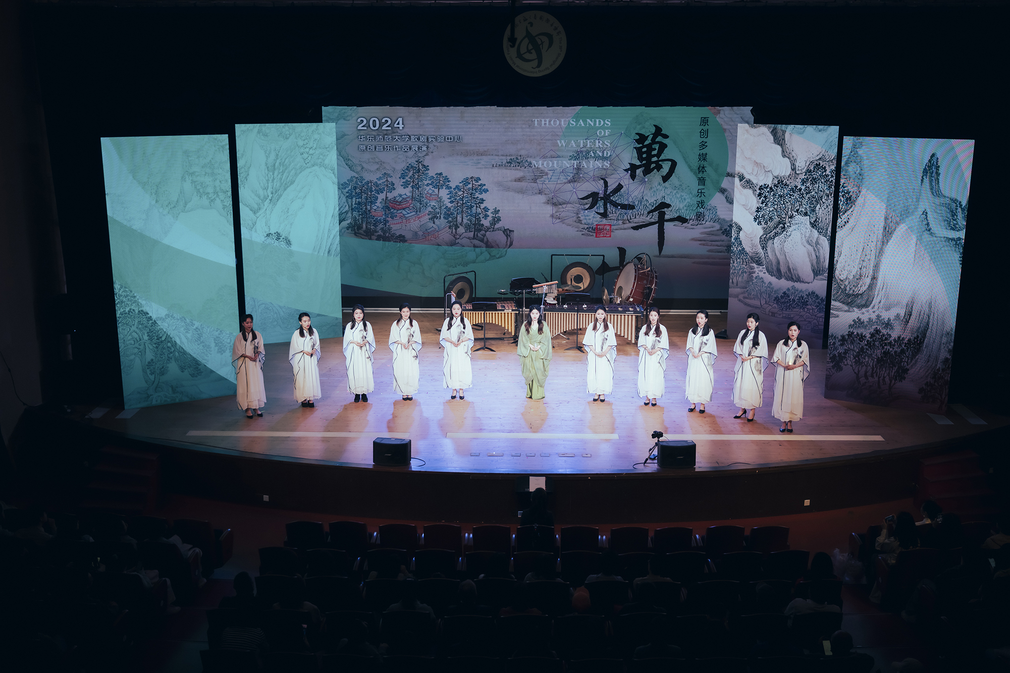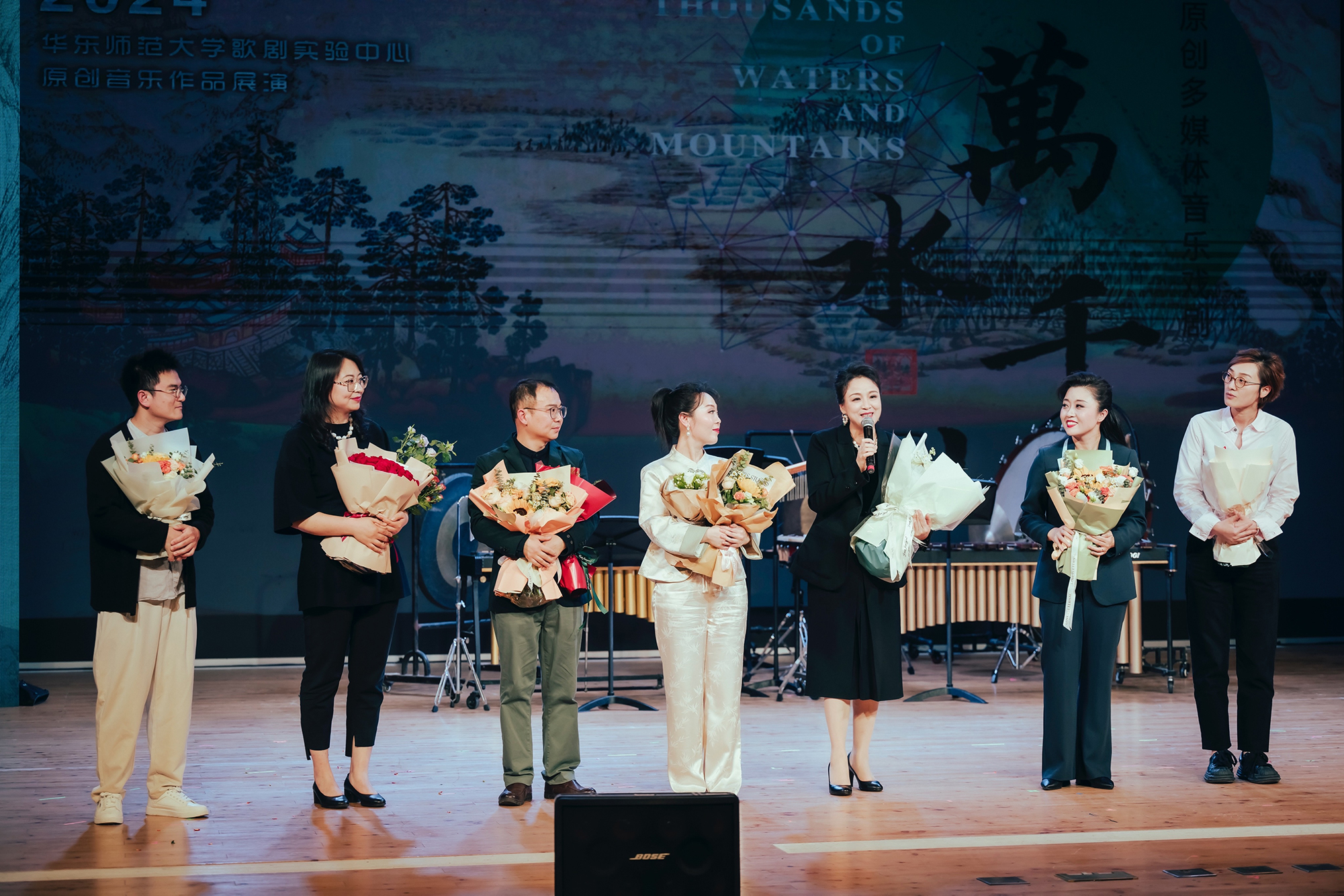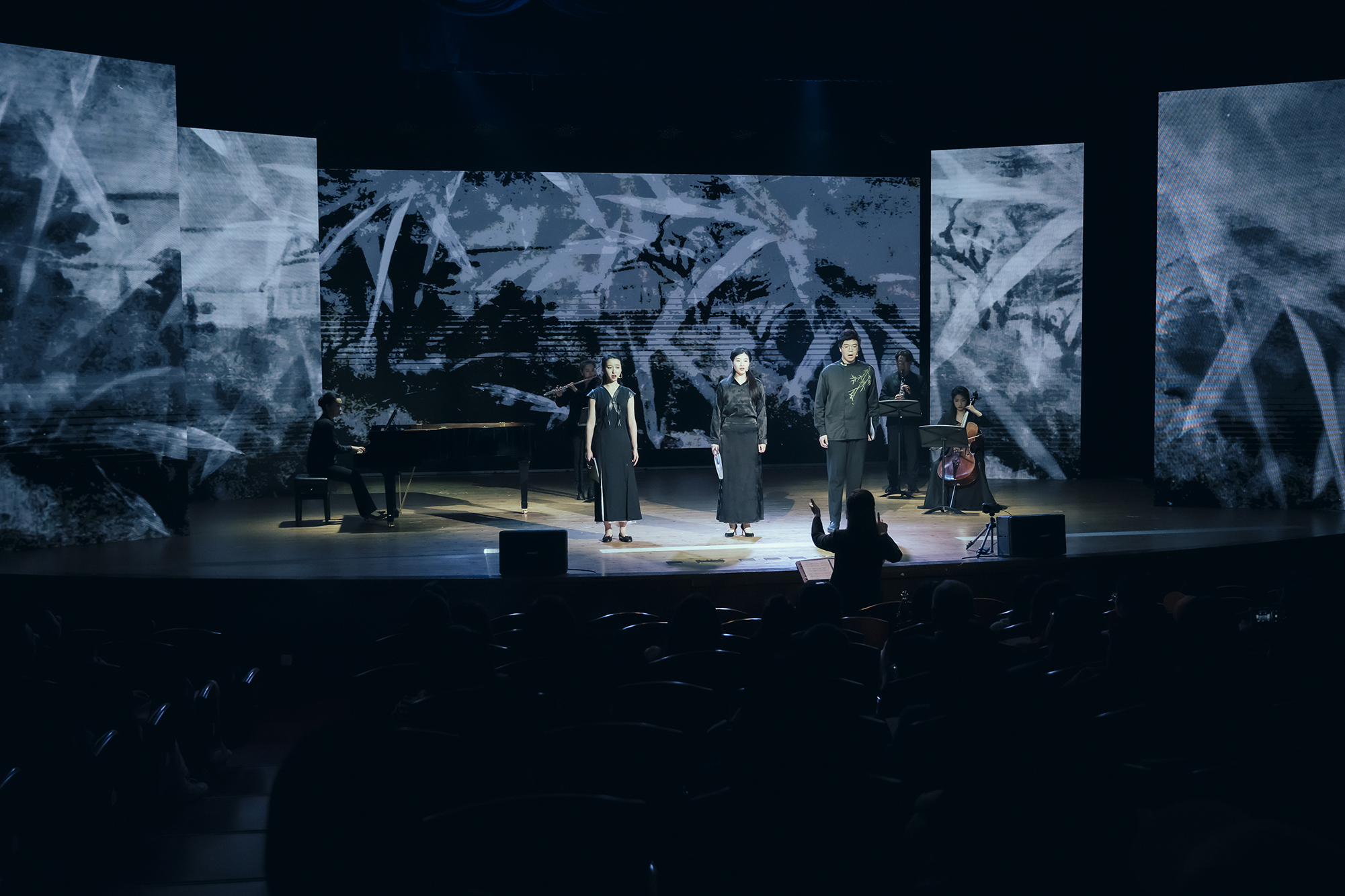 4月26日晚,澳门永利皇宫官网入口歌剧实验中心以其创造力和创新精神,在音乐学院音乐厅呈现了一场非凡的视听盛宴——原创多媒体音乐戏剧《万水千山》。作为歌剧实验中心2024年的开创性音乐作品展示,它不仅是综合性大学音乐学院参与上海之春艺术节作品展演的浓重一笔,更是澳门永利皇宫官网入口在推动文化与艺术融合领域的新纪元。