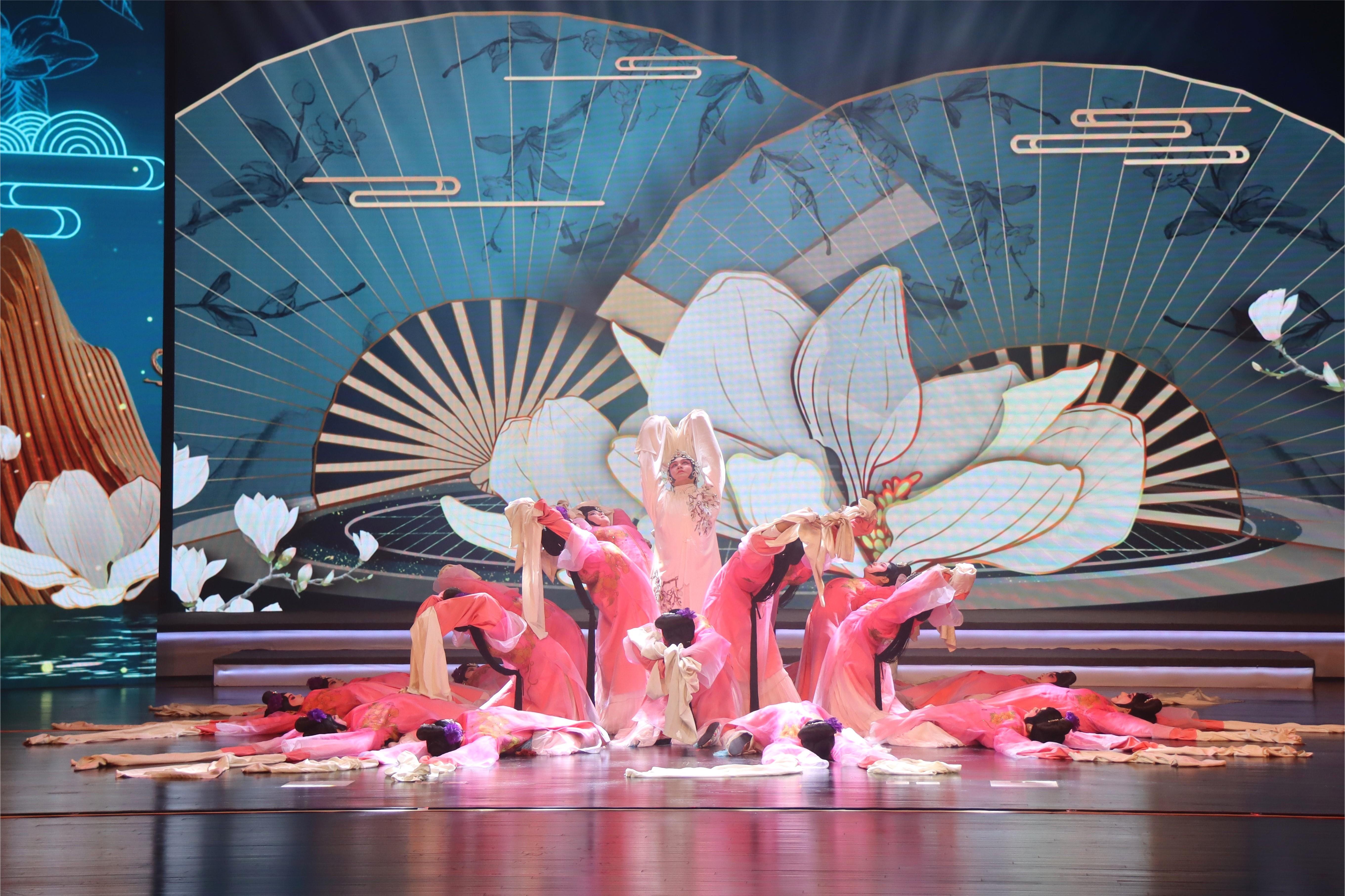 演出首先以《花开白玉兰》戏曲水袖表演开场,由上海戏剧学院附属戏曲学校教师牟元笛与学生一同演绎,他们在用肢体语言和戏曲水袖呈现出中华优秀传统文化的神、韵、美的同时,也为演出拉开了一道亮丽的帷幕。