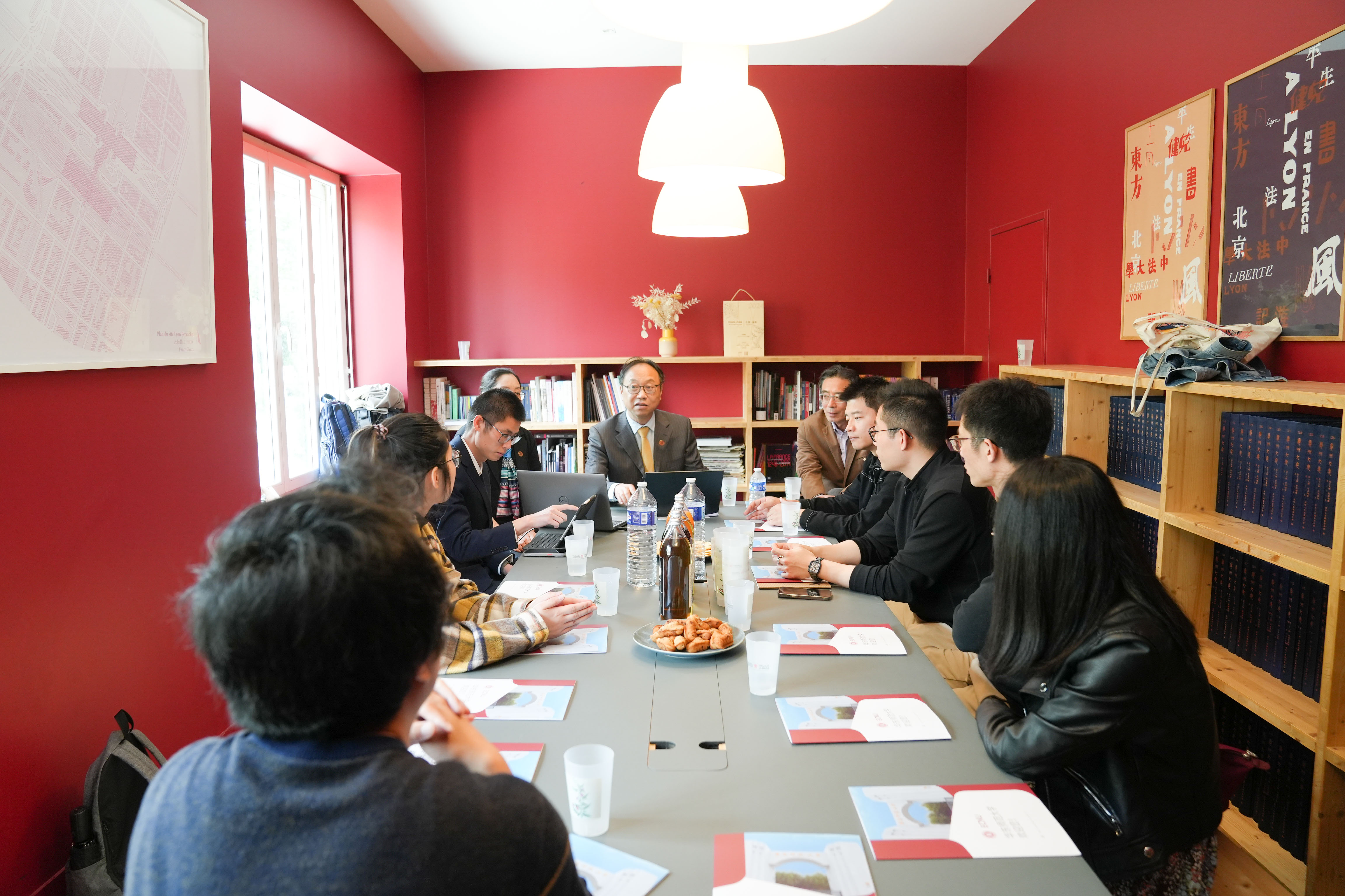 华东师大此次在巴黎、里昂等地开展的“汇流”人文交流系列活动与新里昂中法大学共同策划组织而成并得到了里昂华人总商会的大力支持。在新里昂中法大学,华东师大副校长戴立益与其团队成员还以线上线下相结合的方式与里昂的中国留学生就学校人才引进与培养进行了宣讲交流。
